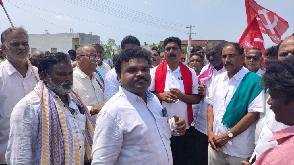 వైరా మార్కెట్ ముందు రైతుల రోడ్డుపై బైఠాయింపు