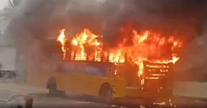 నవతెలంగాణ – హైదరాబాద్ : శంషాబాద్ లో పిక్నిక్ కు వెళ్తున్న స్కూల్ బస్సుకు పెను ప్రమాదం తప్పింది. చంపాపేట్ నుండి శంషాబాద్ కు వెళ్తున్న బస్సు శంషాబాద్ పోలీస్ స్టేషన్ సమీపంలోకి రాగానే బస్సులో మంటలు చెలరేగాయి. డ్రైవర్ అప్రమత్తతతో బస్సులోని విద్యార్థులందరూ సురక్షితంగా బయటపడ్డారు. ఈ ఘటనతో భారీగా ట్రాఫిక్ జామ్ అయింది. ప్రమాదానికి గల కారణాలు తెలియాల్సి ఉంది. ఇటీవల శంషాబాద్ లోనే మరో స్కూల్ బస్సు బోల్తా పడి పలువురు విద్యార్థులు గాయపడిన విషయం తెలిసిందే.