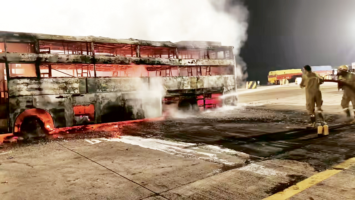 లక్నో: ఆగ్రా-లక్నో ఎక్స్ప్రెస్వేపై మరో ప్రయివేటు బస్సులో మంటలు చెలరేగాయి. ఢిల్లీ నుంచి లక్నో మీదుగా గోండా ప్రాంతానికి వెళ్తున్న ఏసీ స్లీపర్ బస్సులో రెవ్రి టోల్ ప్లాజా సమీపంలో ఆదివారం మంటలు చెలరేగాయి. తెల్లవారుజామున 4:45 గంటల ప్రాంతంలో టోల్ ప్లాజాకు 500 మీటర్ల ముందు బస్సులో అకస్మాత్తుగా మంటలు చెలరేగినట్టు అధికారులు తెలిపారు. దీంతో ప్రయాణికులు భయభ్రాంతులకు గురయ్యారు. వెంటనే అప్రమత్తమైన డ్రైవర్ ప్రయాణికులందరినీ కిందకు దించేయడంతో పెద్ద ప్రమాదం తప్పింది. సమాచారం అందుకున్న వెంటనే పోలీసులు, అగ్నిమాపక బృందాలు ఘటనా స్థలానికి చేరుకొని..మంటలు ఆర్పివేశారు. బస్సులో ఉన్న దాదాపు 39 మంది ప్రయాణికులు సురక్షితంగా బయటపడ్డారు. మొదట బస్సు చక్రంలో ప్రారంభమైన మంటలు వాహనం లోని మిగిలిన భాగాలకు వ్యాపించినట్టు డ్రైవర్ జగత్ సింగ్ తెలిపాడు. ప్రమాదం విషయం తెలుసుకున్న ప్రయివేటు బస్సు యాజ మాన్యం ప్రయాణికులకు మరోబస్సును ఏర్పాటు చేసింది. బస్సుకు మంటలు అంటుకోవడానికి గల కారణాలపై దర్యాప్తు చేస్తున్నట్టు పోలీసులు పేర్కొన్నారు.