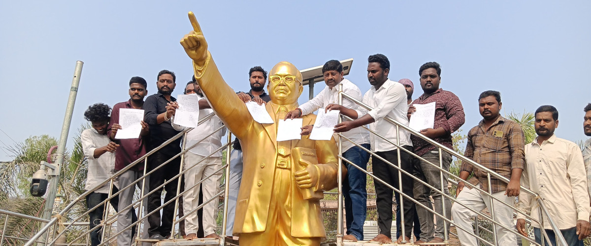 అంబేడ్కర్ విగ్రహానికి అందించిన రాజీనామా పత్రం