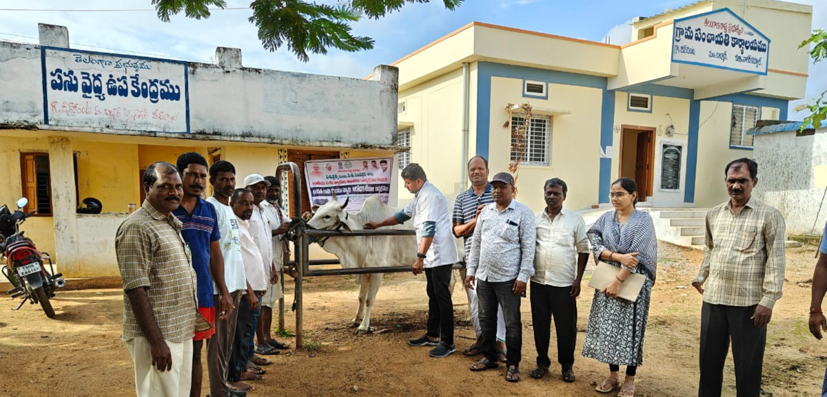 గాలికుంటు వ్యాధి సోకిన పశువులకు ఉచితంగా టీకాలు వేయడం జరుగుతుందని పశు వైద్యాధికారి అనిల్ అన్నారు. బుధవారం మండల పరిధిలోని జినుకుంట గ్రామంలో పశు వైద్య ఉప కేంద్రంలో పశువులకు టీకా శిబిరం ఏర్పాటు చేశారు. ఈ శిబిరానికి జినుకుంట గ్రామ రైతులతో పాటు పరిసర గ్రామాల నుండి రైతులు పశువులను తీసుకొచ్చి టీకాలు ఇప్పించినట్లు తెలిపారు. పశు వైద్య శిబిరం సందర్భంగా 427 పశువులకు గాలి కుంటు వ్యాధికి సంబంధించి టీకాలు ఇవ్వడం జరిగిందని తెలిపారు. ప్రతిరోజు గ్రామాలకు వైద్య శిబిరం సిబ్బంది వస్తారని రైతులు ఈ అవకాశాన్ని ఉపయోగించుకొని పశువులను జాగ్రత్త పరుచుకొని గాలి కుంటు రోగాలు నుండి కాపాడుకోవాలని ఈ సందర్భంగా వైద్యాధికారి సూచించారు. ఈ కార్యక్రమంలో పారా వెటర్నరీ సిబ్బంది, గోపాలమిత్ర, మైత్రి మరియు రైతులు సిబ్బంది ఉన్నారు.
