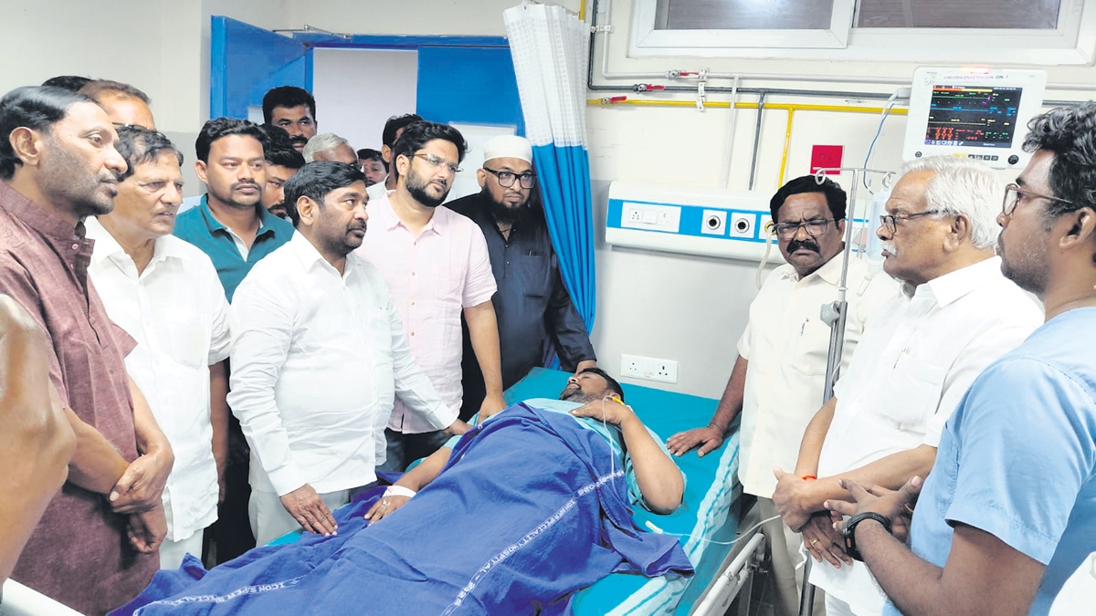 కాంగ్రెస్ గూండాల దాడిలో గాయపడిన వారిని పరామర్శించిన మాజీ మంత్రి జగదీశ్రెడ్డి, మాజీ ఎమ్మెల్యే జూలకంటి రంగారెడ్డి, నల్లమోతు భాస్కర్రావు