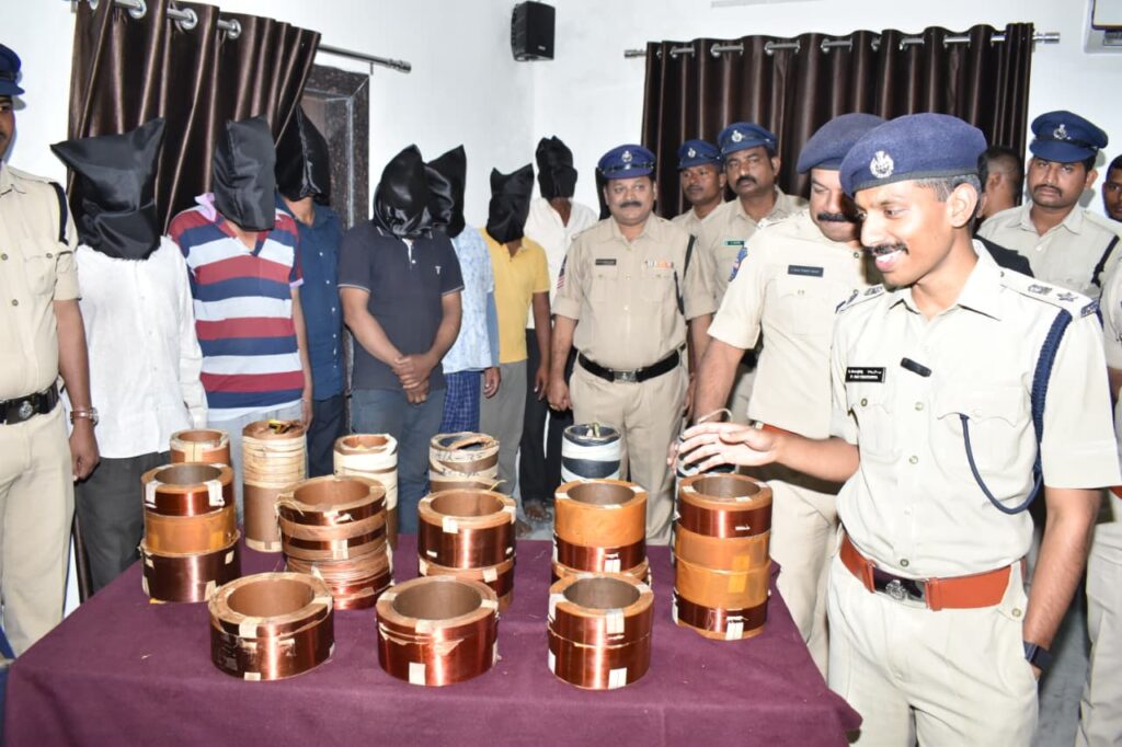 వారి వద్ద నుంచి 40 కేజీల కాపర్ కాయిల్స్, 5 లక్షల 50 వేల నగదు,రెండు స్కూటీ లు, 6 సెల్ ఫోన్ లు స్వాదినం చేసుకొని వారిని అరెస్ట్ చేసి కోర్ట్ ముందు హాజరు పరుస్తున్నట్లు తెలిపారు. కేసును చేదించడంలో ఏసీపీ రాజా వెంకటరెడ్డి, ముఖ్యపాత్ర పోషించిన డిచ్పల్లి సిఐ వినోద్, ఇందల్వా ఎస్సై సందీప్, డిచ్పల్లి ఎస్సై షరీఫ్, జక్రంపల్లి ఎస్సై మహేష్, సిబ్బంది కిరణ్ గౌడ్, కిషోర్ గౌడ్, ప్రశాంత్, సందీప్, సర్దార్, సుజిత్, నవీన్ లను నిజామాబాద్ పోలీస్ కమిషనర్ సాయి చైతన్య అభినందించారు.