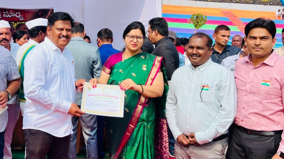 77వ గణతంత్ర దినోత్సవ వేడుకల సందర్బంగా సోమవారం నిర్మల్ జిల్లా కలెక్టర్ అభిలాష అభినవ్ చేతుల మీదుగా కుభీర్ మండల అధికారి ఎంపీడీఓ గంగా సాగర్ రెడ్డి కి జిల్లా స్థాయిలో ఉత్తమ అవార్డు  ప్రశాంస పత్రం అందించడం జరిగింది. ఈ సందర్బంగా ఎంపీడీఓ మాట్లాడుతూ మండలంలో ఉన్న అన్ని గ్రామాల నాయకులు సహకరించిన అధికారులకు, ప్రజలకు కృతజ్ఞతలు తెలపరు. ఈ అవార్డు మరింత మండల అభివృద్ధికి కృషి చేస్తానని అన్నారు.