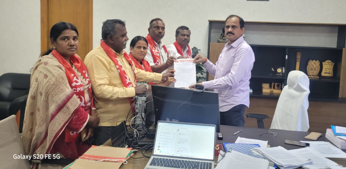 తుఫాను ప్రభావంతో తడిసిన వరి ధాన్యాన్ని ప్రభుత్వం కొనుగోలు చేయాలి అని సీపీఐ(ఎం) నాయకుల డిమాండ్ చేశారు. ఈ మేరకు శుక్రవారం ఇటీవల ఏర్పడ మెంత తుఫాన్ ప్రభావంతో జిల్లాలో కురిసిన వర్షాల వలన కల్లాల మీద ఆరబెట్టిన వరి ధాన్యం వర్షాలతో తడిసి పోయిందని, దీనివలన వరి ధాన్యం కొనుగోలు చేయకపోతే ముక్కిపోయి, మొలకలెత్తి రైతులు తీవ్రంగా నష్టపోతారని అందువల్ల వెంటనే యుద్ధ ప్రాతిపదికన ప్రభుత్వం కొనుగోలు చేయాలని సీపీఐ(ఎం) జిల్లా కమిటీ ఆధ్వర్యంలో జిల్లా అదనపు కలెక్టర్ కి వినతి పత్రం అందజేశారు.