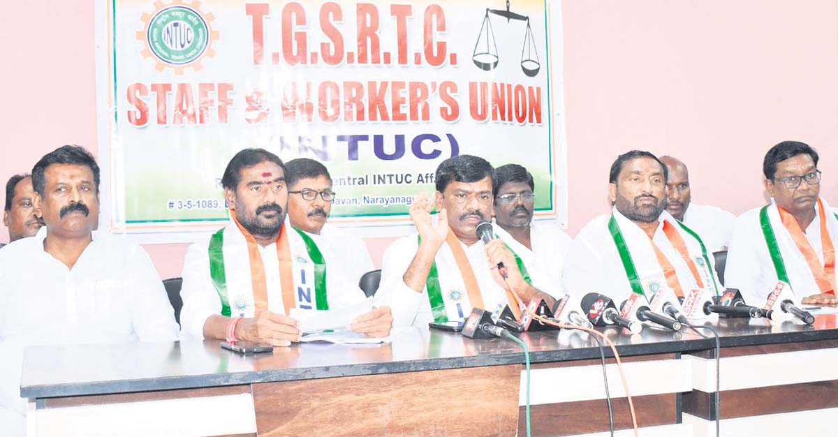 ఆర్టీసీ కార్మికుల సమస్యలను పరిష్కరించే దిశగా కాంగ్రెస్ ప్రభుత్వం కృషి చేస్తోందని, త్వరలో ప్రభుత్వం నుంచి కార్మికులు శుభవార్త వింటారని ఐఎన్టీయూసీ రాష్ట్ర ఉపాధ్యక్షులు మొగుళ్ల రాజిరెడ్డి తెలిపారు. టీజీఎస్ఆర్టీసీ, ఐఎన్టీయూసీ స్టాఫ్ అండ్ వర్కర్స్ యూనియన్ ఆధ్వర్యంలో హైదరాబాద్లోని బషీర్బాగ్ ప్రెస్క్లబ్లో గురువారం మీడియా సమావేశంలో ఆయన మాట్లాడారు. కాంగ్రెస్ ప్రజా ప్రభుత్వంలో ఆర్టీసీ ఉద్యోగులు సమ్మె బాట పట్టడం బాధాకరమన్నారు. ఐఎన్టీయూసీ తరపున సమ్మెకు మద్దతు తెలపడంతోపాటు నిరసన కార్యక్రమాల్లో ప్రత్యక్షంగా పాల్గొంటున్నామని చెప్పారు. ఐఎన్టీయూసీ అనుబంధ సంస్థలు ఇప్పటికే సీఎం ఎ.రేవంత్ రెడ్డి, డిప్యూటీ సీఎం భట్టి విక్రమార్క, రవాణా శాఖ మంత్రి పొన్నం ప్రభాకర్, రాజ్యసభ సభ్యులు వేం నరేందర్ రెడ్డి, ఆర్టీసీ ఎండి వై.నాగిరెడ్డిని కలిసి కార్మికుల సమస్యలపై వినతిపత్రం అందజేశాయని చెప్పారు. అయితే, ఆర్టీసీ జేఏసీ ప్రతిపాదించిన 32 డిమాండ్లలో 29 డిమాండ్లను పరిష్కరించేందుకు ప్రభుత్వం సిద్ధంగా ఉందని, ప్రభుత్వంలో ఆర్టీసీ విలీనంతోపాటు కార్మిక సంఘాల పునరుద్ధరణ అంశాలపై విశ్లేషించేందుకు సమయం కోరుతోందని చెప్పారు. గత బీఆర్ఎస్ ప్రభుత్వ హయాంలో ఆర్టీసీ కార్మికులు 55 రోజులు సమ్మె చేస్తే పట్టించుకున్న పాపాన పోలేదని, ఇప్పుడు హరీశ్రావుతోపాటు బీఆర్ఎస్ నేతలు కార్మికులపై కపట ప్రేమ ప్రదర్శిస్తున్నారని ఆగ్రహం వ్యక్తం చేశారు.