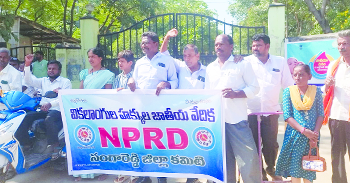 వికలాంగుల శాఖను ప్రత్యేకంగా కొనసాగించాలని గత ప్రభుత్వం హయాంలో ఎన్‌పీఆర్‌డీ ఆధ్వర్యంలో అనేక ఉద్యమాలు నిర్వహించమన్నారు. పోరాటాలకు తలొగ్గిన బీఆర్‌ఎస్‌ ప్రభుత్వం జీవో 34ను విడుదల చేసిందని గుర్తుచేశారు. అనంతరం అధికారంలోకి వచ్చిన కాంగ్రెస్‌ ప్రభుత్వం జీవోను అమలు చేయడంలో తీవ్రమైన నిర్లక్ష్యం చేస్తుందన్నారు. సంఘం జిల్లా అధ్యక్ష, కార్యదర్శులు ఎం.బస్వరాజు, కె.నర్సింలు మాట్లాడుతూ.. కాంగ్రెస్‌ ప్రభుత్వం అధికారంలోకి వచ్చి 23 నెలలు అవుతున్నా అసెంబ్లీ ఎన్నికల సందర్బంగా వికలాంగులకు ఇచ్చిన హామీలను ఎందుకు అమలు చేయడం లేదన్నారు. పింఛన్లు రూ.6000లకు పెంచుతామని హామీ ఇచ్చి పెంచకుండా ఎందుకు కాలయాపన చేస్తుందని ప్రశ్నించారు. పైగా 2 లక్షల మంది చేయూత పింఛన్లను రద్దు చేశారని వాపోయారు. ఈ కార్యక్రమంలో జిల్లా ఉపాధ్యక్షులు లలిత, రాంచందర్‌, సంగమేష్‌, సహాయ కార్యదర్శులు శంకర్‌ నాయక్‌, శివరాజు, జిల్లా నాయకులు నావజ్‌, సుమలత, సుభాష్‌, భారత్‌, వీరేశం తదితరులు పాల్గొన్నారు.