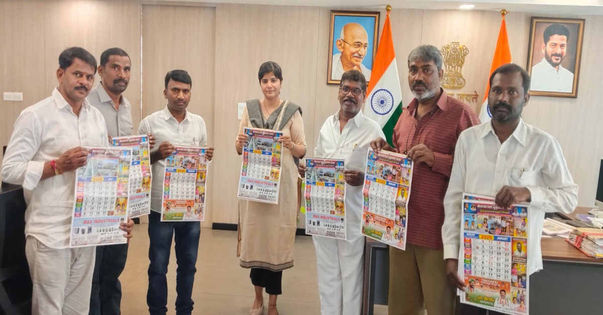 గ్రేటర్ హైదరాబాద్ నగర రజక వృత్తిదారుల సంఘం ఆధ్వర్యంలో ముద్రించిన నూతన సంవత్సర,2026 క్యాలెండర్ (కాలమానిని) ను గ్రేటర్ హైదరాబాద్ జిల్లా కలెక్టర్ హరిచంధన దాసరి ఆవిష్కరించారు.రజక వృత్తి దారుల సంఘం సభ్యులకు వారి కుటుంబ సభ్యులకు నూతన సంవత్సర శుభాకాంక్షలు తెలియజేశారు. ఈ కార్యక్రమంలో రజక వృత్తిదారుల సంఘం జిల్లా అధ్యక్షులు చారగొండ వెంకట స్వామి,జిల్లా ప్రధాన కార్యదర్శి మరియల గోపాల్,జిల్లా సోషల్ మీడియా కన్వీనర్ సిహెచ్ నగేష్ జిల్లా కమిటీ సభ్యులు పి రాజు, కె గోపి,సీహెచ్ శ్రీనివాస్ తదితరులు పాల్గొన్నారు.