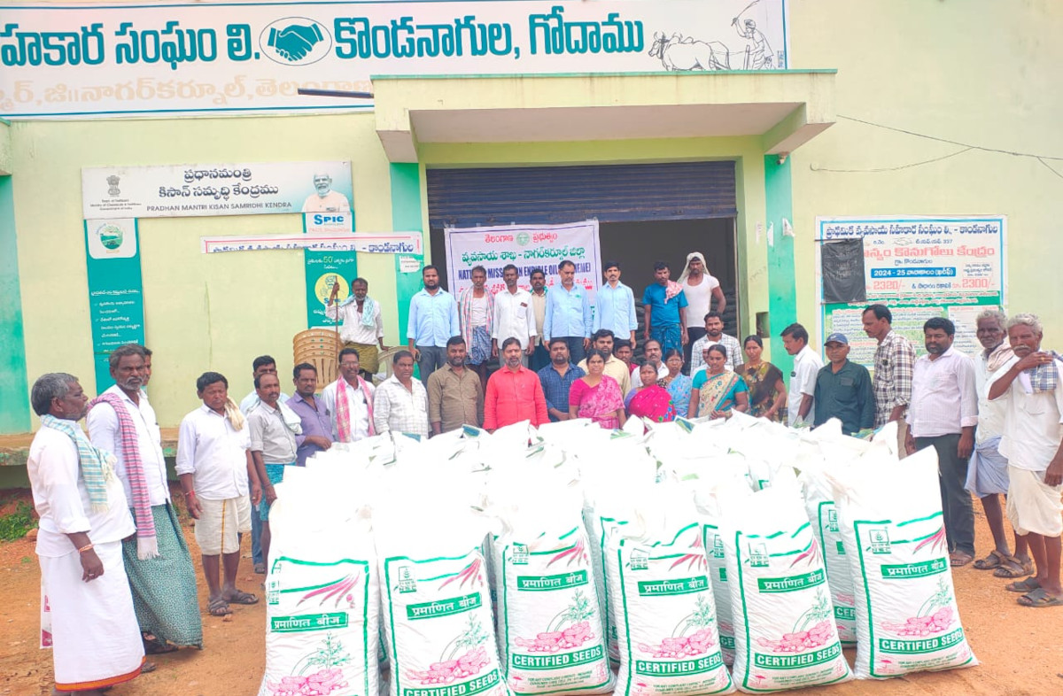 మండలంలోని కొండనాగుల గ్రామ సహకార సంఘం పూర్తి సబ్సిడీతో వేరుశనగ విత్తనాలను పంపిణీ చేశారు. ఎన్ ఎం ఈ ఓ- ఓఎస్ పథకం ద్వారా 100% సబ్సిడీతో విత్తనాలు పంపిణీ కార్యక్రమాన్ని ప్రారంభించారు. తెలంగాణ రాష్ట్ర ప్రభుత్వం ఎం ఎం ఈ ఓ- ఓఎస్ ( నేషనల్ మిషన్ ఆన్ ఎడిబుల్ ఆయిల్స్- ఆయిల్ సీడ్స్) పథకం ద్వారా రైతులకు 100% సబ్సిడీతో వేరుశనగ విత్తనాలు పంపిణీ చేయడం జరుగుతుందన్నారు. సబ్సిడీ వేరుశనగ విత్తనాలు కావాలనుకునే రైతులు పట్టాదారు పాసుబుక్కు జిరాక్స్లు రెండు సెట్లు, ఆధార్ కార్డు జిరాక్స్లు రెడ్ సెట్లు, పాస్పోర్ట్ సైజు ఫోటోలు రెండు ఎస్ పి ఓ సభ్యత్వం కలిగి ఉండాలని తెలిపారు. అర్హులైన రైతులు ఈ అవకాశాన్ని సద్వినియోగం చేసుకోవాలని అధికారులు కోరారు. ఈ కార్యక్రమంలో మండల వ్యవసాయ అధికారి కావేటి నరేష్,  పిఎసిఎస్ సీఈఓ రాజవర్ధన్ రెడ్డి  రైతులు పాల్గొన్నారు.