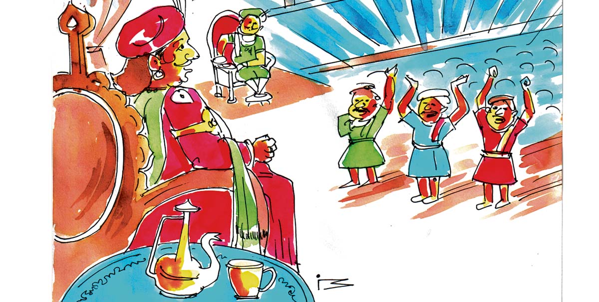 రాజావారు బాల్కనీలో మెత్తటి దిండ్లున్న కుర్చీలో కూర్చుని, పనివాడిచేత మీసాలకు సంపెంగ నూనె రాయిచుకుంటున్నారు. ఆ పక్కనే మరో కుర్చీలో దిండుకానుకుని కూర్చున్న కుమార్రాజావారికి ఓ సందేహం రానే వచ్చింది ఎప్పట్లానే. నాన్న రాజావారూ ఉరి తీయడమనగానేమి? అనడిగాడు. రాజావారు ఉలిక్కిపడి పనివాడ్ని అవతలికి పొమ్మని గద్దించి వాడటుపోయేక కుమార్రాజావారూ ఏమిటీ పనికి మాలిన ప్రశ్న. అనవసరమైన డవుట్లడిగి మమ్మల్ని ఇరకాటంలో పెడతారు మరి అన్నాడు. తమరే కదా తండ్రిగారూ… తెలియంది తెలుసుకోవాలని, చూడంది చూసితీరాలని చెప్పింది. వద్దంటే తెలుసుకోడం, చూడ్డం రెండూ మానేస్తాన్లెండి అన్నాడు మూతిసున్నాలా చుట్టి, నుదుటి మీద అడ్డగీతలు నిలబెట్టి.