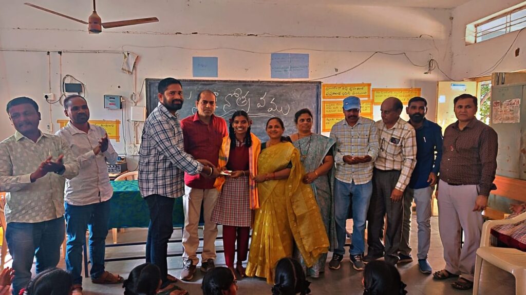 విద్యార్థిని హర్షిత కు శాలువాతో సన్మానించి తమవంతు ప్రోత్సాహకంగా హర్షిత కు రూ.500/- బహుమతిగా అందజేశారు. ఈ సందర్భంగా వారు మాట్లాడుతూ.. మండల స్థాయిలో నిర్వహించిన వ్యాసరచన పోటీల్లో మండలంలో ప్రతిభ బహుమతి గెలుపొందారని, మండల స్థాయి నుండి జిల్లా స్థాయిలో నిర్వహించిన పోటీలో జిల్లా స్థాయిలో మొదటి బహుమతి పొందిందని, జిల్లా స్థాయి నుండి రాష్ట్రస్థాయిలో జరిగిన పోటిలో మొదటి బహుమతి పొందడం జిల్లాకు, మండలానికి, గ్రామానికి గర్వ కారణమని, రాబోవు రోజుల్లో జాతీయస్థాయిలో జరిగే పోటీల్లో ఎంపికై  ఉత్తమ ప్రతిభ కనబర్చుతు ఎందరికో స్ఫూర్తిగా నిలవాలని వారు ఆకాంక్షించారు. హర్షిత కు  మెంటర్ గా వ్యవహరించిన గంగాధర్  కృషి ని కొనియాడుతూ ఆయనకు ప్రత్యేకంగా అభినందించారు. కార్యక్రమంలో గెజిటెడ్ ప్రధానోపాధ్యాయులు మాధురి , ప్రాథమిక పాఠశాల ప్రధానోపాధ్యాయులు శ్యామల శ్రీ, ముబాసిర్, ఉన్నత పాఠశాల, ప్రాథమిక పాఠశాలలకు చెందిన  ఉపాధ్యాయ బృందం పాల్గొన్నారు.