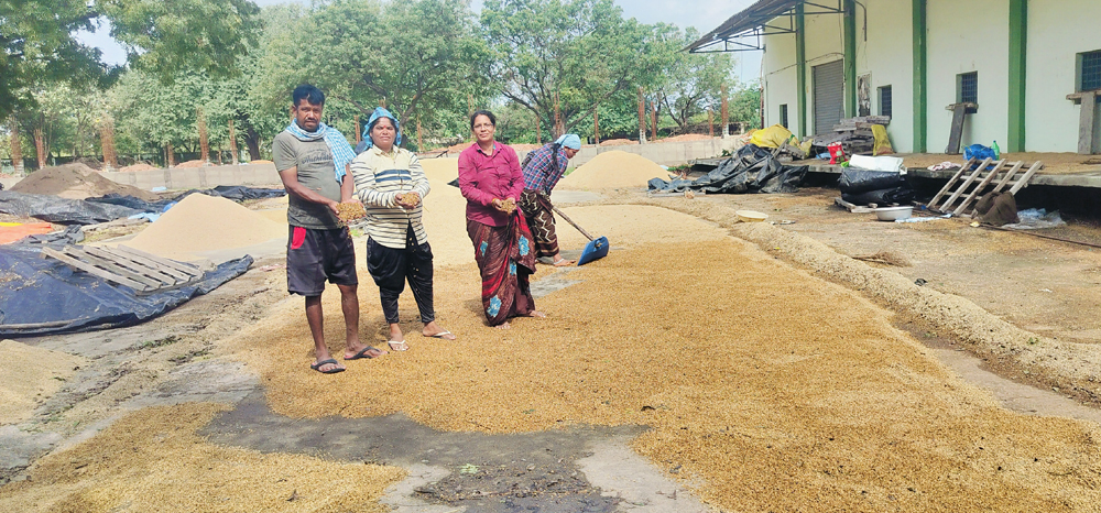 వరుసగా కురుస్తున్న వర్షాలతో తడుస్తున్న ధాన్యం కుప్పలు