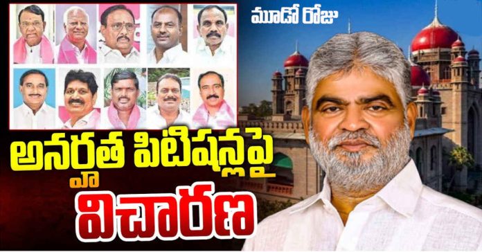నవతెలంగాణ హైదరాబాద్: మూడో రోజు ఎమ్మెల్యేల అనర్హత పిటిషన్లపై విచారణ కొనసాగనుంది. స్పీకర్ గడ్డం ప్రసాద్ ఎదుట శనివారం ఎమ్మెల్యేలు గూడెం మహిపాల్రెడ్డి, బండ్ల కృష్ణమోహన్రెడ్డి హాజరవ్వనున్నారు. పిటిషనర్ల తరఫున న్యాయవాదులు ఆ ఎమ్మెల్యేలను ప్రశ్నించనున్నారు. ఈ విచారణ నేపథ్యంలో అసెంబ్లీ ఆవరణలో అధికారులు ప్రత్యేక ఆంక్షలు విధించారు.