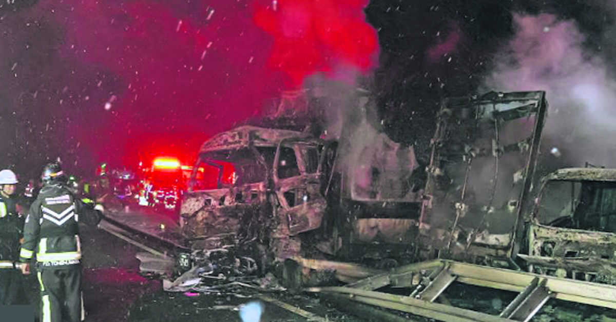 మినాకామి : జపాన్‌లోని గున్మా ప్రిఫెక్చర్‌లోని మినాకామి పట్టణం సమీపంలో కన్‌-ఎత్సు ఎక్స్‌ప్రెస్‌వేపై శుక్రవారం రాత్రి ఘోర రోడ్డు ప్రమాదం చోటుచేసుకుంది. భారీ హిమపాతం, రోడ్డుపై గడ్డకట్టిన మంచు కారణంగా 50కి పైగా వాహనాలు ఒకదానికొకటి ఢీకొన్నాయి. ఈ ఘటనలో ఒకరు మృతిచెందగా, మరో 26 మంది గాయపడ్డారు. ప్రమాదం తర్వాత భారీ అగ్నిప్రమాదం సంభవించి, అనేక వాహనాలు కాలి బూడిదయ్యాయి. అధికారులు తెలిపిన వివరాల ప్రకారం, శుక్రవారం రాత్రి 7:30 గంటల సమయంలో భారీగా కురుస్తున్న మంచు కారణంగా తొలుత రెండు ట్రక్కులు ఢీకొన్నాయి.