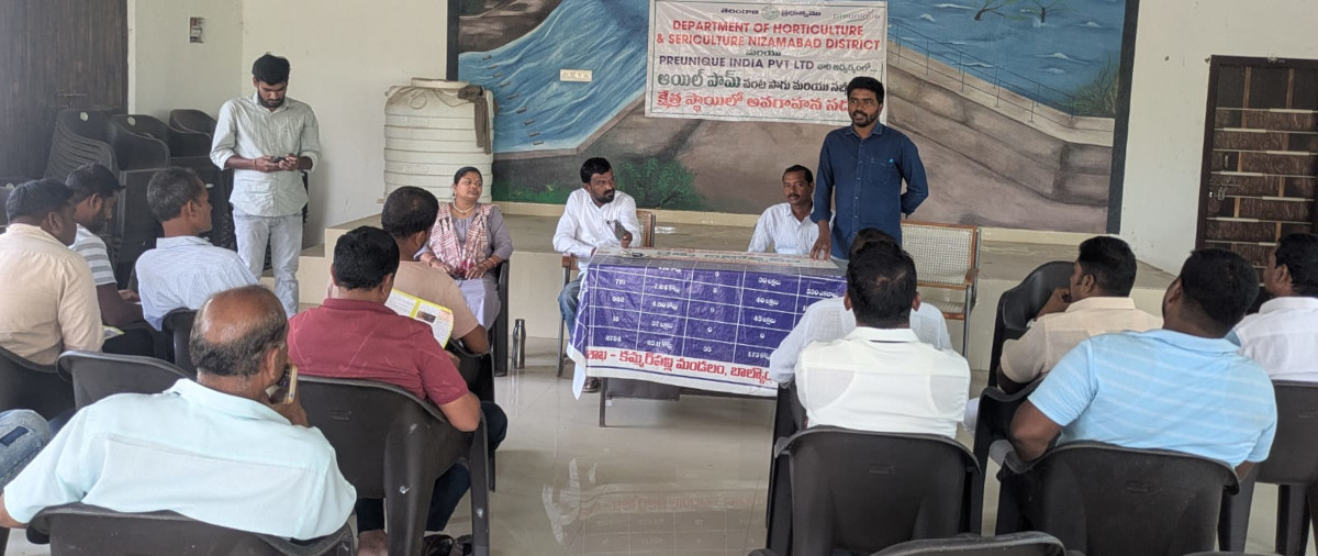 ఆయిల్ ఫామ్ మధ్యలో అంతర పంటల సాగు (మొక్కజొన్న, జొన్న, పసుపు, కూరగాయలు, సోయా) చేసినందుకు గాను ఎకరానికి రూ.4200 చొప్పున రైతు ఖాతాలో సంవత్సరానికి ఒకసారి జమ చేస్తున్నామని వివరించారు.ఆయిల్ ఫామ్ సాగు చేస్తున్న రైతులకు చిన్న, సన్నకారు, ఐదెకరాల లోపు ఉన్నవారికి 90 శాతం రాయితీ, ఎస్సీ, ఎస్టీ రైతులైతే 100 శాతం రాయితీ, 5 ఎకరాల మీదా సాగు చేసేవారు 80 శాతం రాయితీ కింద డ్రిప్ సౌకర్యం పొందవచ్చని తెలిపారు. తెలంగాణ ప్రభుత్వం ఆయిల్ ఫామ్ పంట సాగు చేయడానికి పలు రకాల సబ్సిడీలతో సాగును ప్రోత్సహిస్తుందన్నారు. కార్యక్రమంలో మండల వ్యవసాయ అధికారిని రమ్యశ్రీ, ఆయిల్ ఫామ్ కంపెనీ అధికారి మధు, వ్యవసాయ విస్తీర్ణ అధికారి శ్యామ్, రైతులు తదితరులు పాల్గొన్నారు.