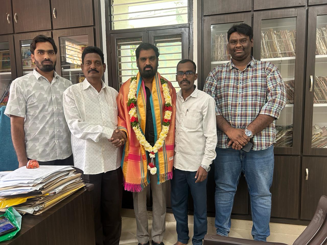 నవతెలంగాణ-ఆర్మూర్ : ఈ ఆర్ ఫౌండేషన్ ద్వారా చేస్తున్న పలు సేవా కార్యక్రమాలను గుర్తించి నందిపేట మండలం బద్గుణ, ఐలాపూర్ గ్రామాలకు చెందిన డాక్టర్ నరసయ్య, నరేష్ లు గురువారం పట్టణంలోని శ్రీరామ కాలనీ ఈ ఆర్ ఫౌండేషన్ కార్యాలయంలో కలుసుకున్నారు. ఫౌండేషన్ ద్వారా చేస్తున్న పలు సేవ కార్యక్రమాలను గుర్తించి వారిని అభినందించారు. అనంతరం ఆయనకు పూలమాలవేసి శాలువాతో సన్మానించారు. ఈ సందర్భంగా వారు మాట్లాడుతూ రాబోయే రోజుల్లో బీసీలు రాజ్యాధికార దిశగా అడుగులు వేయాల్సిన అవసరం ఎంతైనా ఉందన్నారు. బీసీ సామాజిక వర్గాన్ని బలోపేతం చేయడంలో నందిపేట మండలంలో తమ వంతు మద్దతు ఉంటుందన్నారు. రాబోయే రోజులలో రాజశేఖర్, రాజకీయ రంగ ప్రవేశం చేసి ప్రజలకు మరెన్నో సేవలు చేయాలని ఆకాంక్షించారు. ఈ కార్యక్రమంలో సాక్షి ఎగ్స్ ట్రేడర్, షా రిక్ పాల్గొన్నారు.