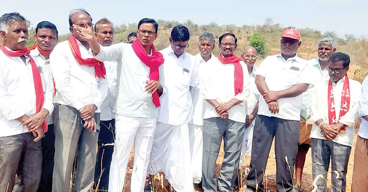 ప్రజల డబ్బుతో జీతం తీసుకుంటున్న తహసీల్దార్ పేదలకు వ్యతిరేకంగా నివేదికలు ఇస్తున్నారని విమర్శించారు. ఈ భూముల్లో పోలీస్ బెటాలియన్ ఏర్పాటును రద్దు చేయిస్తానని ఎమ్మెల్యే స్పష్టమైన ప్రకటన చేయాలని డిమాండ్ చేశారు. పోలీస్ బెటాలియన్ రద్దు కోసం కలిసొచ్చే పార్టీలతో సీపీఐ(ఎం) ప్రత్యక్ష ఉద్యమాలు నిర్వహించనున్నట్టు తెలిపారు. కాంగ్రెస్ అధికారంలోకి వచ్చాకే పేదల భూములు గుంజుకునే కార్యక్రమాలు ఎక్కువయ్యాయని విమర్శించారు. పోలీసు బెటాలియన్ ఏర్పాటును రద్దు చేస్తున్నట్టు ఎమ్మెల్యే ప్రకటన చేయకపోతే ఆయన్ను ఈ ప్రాంతంలో తిరగనివొవ్వద్దని రైతులకు పిలుపునిచ్చారు. పోలీసు బెటాలియన్ ఏర్పాటుకు సీపీఐ(ఎం) వ్యతిరేకం కాదన్నారు. మరోచోట ఎక్కడైనా ఏర్పాటు చేసుకోవాలని సూచించారు. అవసరమైతే డబ్బులు పెట్టి ప్రయివేట్ భూములను కొనుగోలు చేయాలని డిమాండ్ చేశారు. ఈ కార్యక్రమంలో సీపీఐ(ఎం) జిల్లా కార్యదర్శివర్గ సభ్యులు జి.శ్రీనివాసచారి, పీఎన్ఎం జిల్లా కార్యదర్శి ఈ.ముత్యాలు, పార్టీ నాయకులు దొంతగొని పెద్దులు, తుమ్మల నర్సిరెడ్డి, మండల కార్యదర్శి దోడ యాదిరెడ్డి, కార్యదర్శివర్గ సభ్యులు చింతకాయల నరసింహ, రైతుసంఘం మండల కార్యదర్శి కొమ్ము మల్లేష్, సీపీఐ జిల్లా సమితి సభ్యులు చిలువేరు అంజయ్య, నాయకులు రాచకొండ కృష్ణయ్య, ఉడుత గాలయ్య, గాజుల అంజయ్య, దొంతగోని శంకరయ్య పాల్గొన్నారు.