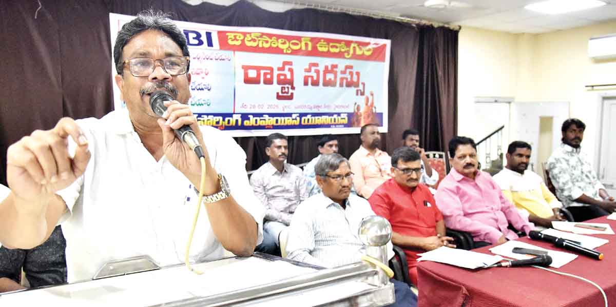‘పెరుగుతున్న ధరలతో..చాలీచాలని వేతనాలతో కుటుంబాన్ని సాకటం కష్టమవుతోందని పలు మార్లు ఎస్బీఐ ఔట్ సోర్సింగ్ ఉద్యోగులు యజమాన్యానికి, ప్రభుత్వాధినేతలకు మోరపెట్టుకున్నా వారితో చట్ట విరుద్దంగా 15గంటల పాటు గొడ్డు చాకిరి చేయిస్తున్నారు. ఇచ్చే జీతానికి చేసే పనికి బోలెడంత వ్యత్యాసం ఉంది. పేరుకు అన్స్కిల్డ్ ఉద్యోగులు..చేసే పని మాత్రం స్కిల్డ్ పనే.. గొర్రెతోక బెత్తెడు జీతాలతో ఇంకేన్నేండ్లు కష్టాలతో బతుకుదాం..’ అందుకే ‘ పోరాడి ఉద్యోగ భద్రతను సాధించుకుందాం’ అని సీఐటీయూ రాష్ట్ర ప్రధాన కార్యదర్శి పాలడుగు భాస్కర్ పిలుపునిచ్చారు. శనివారం హైదరాబాద్లోని సుందరయ్య విజ్ఞాన కేంద్రంలో ఎస్బీఐ ఔట్సోర్సింగ్ ఉద్యోగుల రాష్ట్ర సదస్సును ఆ సంఘం అధ్యక్షుడు నగేశ్ అధ్యక్షతన నిర్వహించారు. ఈ సందర్భంగా భాస్కర్ మాట్లాడుతూ ఔట్ సోర్సింగ్ ఉద్యోగులవి గొంతెమ్మ కోర్కెలు కావన్నారు.వారు రోబోల్లా పనిచేస్తున్నారు..సమాన పనికి సమాన వేతనం ఇవ్వాలని డిమాండ్ చేశారు. మార్కెట్లో రోజురోజుకు ధరలు సామాన్యులకు అందనంత ఎత్తుకు పోయాయన్నారు. విద్యా, వైద్యం ఖరీదైందని ఆందోళన వ్యక్తం చేశారు. ఇక వినోదం అందని ద్రాక్షలా మిగిలిందని చెప్పారు. ఆక్ట్రాయిడ్ లెక్క ప్రకారం పెరిగిన ధరలను దృష్టిలో పెట్టుకుని వేతనాలు నిర్ణయించాలి కదా! మరి ఔట్ సోర్సింగ్ ఉద్యోగుల జీతాలను అలా ఎందుకు నిర్ణయించటం లేదని ప్రశ్నించారు. కార్మిక చట్టాల ప్రకారం 8గంటలు మాత్రమే పని చేయాలి..కానీ..15గంటలు పని చేస్తున్నా లేబర్ అధికారులు ఎందుకు తనిఖీలు చేయటం లేదో చెప్పాలని ప్రభుత్వాన్ని నిలదీశారు. సర్వోన్నత న్యాయస్థానం తీర్పు ప్రకారం ఆ సంస్థలో ఒకే రకమైన పని చేస్తున్నప్పుడు వేతన వ్యత్యాసాలు ఎందుకని ప్రశ్నించిందని గుర్తు చేశారు.దాన్ని కూడా ఈ ప్రభుత్వాలు పట్టించుకోవటం లేదని గుర్తు చేశారు. చట్టాలను, న్యాయస్థానాలను ఓవర్టేక్ చేస్తున్నప్పుడు..ఇక పోరు బాట తప్ప మరో మార్గం లేదని చెప్పారు. కేంద్ర ప్రభుత్వం తీసుకొచ్చిన నూతన ఆర్థిక విధానాల వల్ల ఈ దేశంలో శాశ్వత ఉద్యోగులుండొద్దనే విధానాన్ని అమలు చేస్తున్నదని చెప్పారు. ఈ నేపథ్యంలోనే ఉద్యోగ నియామకాలకు మంగళం పాడిందని గుర్తు చేశారు.వీటి స్థానంలో కాంట్రాక్ట్, ఔట్సోర్సింగ్,క్యాజువల్, టెంపరరీ పేరుతో వెట్టి చాకిరి చేయించుకుంటోందని ఆందోళన వ్యక్తం చేశారు. తుమ్మితే ఊడుపోయే ముక్కులాగా ఉండే ఉద్యోగాలు కాదు..15,20ఏండ్లుగా పని చేస్తున్న వాళ్లను పర్మినెంట్ చేయాలని లేదంటే ఆందోళన బాట పట్టాలని సూచించారు. పోరాడే వారే విజేతలుగా నిలుస్తారని చెప్పారు. మోడీ ప్రభుత్వం తీసుకొచ్చిన రైతు వ్యతిరేక మూడు నల్లచట్టాలను విరమించుకునేంత వరకు సమరశీల పోరాటాన్ని నిర్వహించిన రైతు పోరాట 