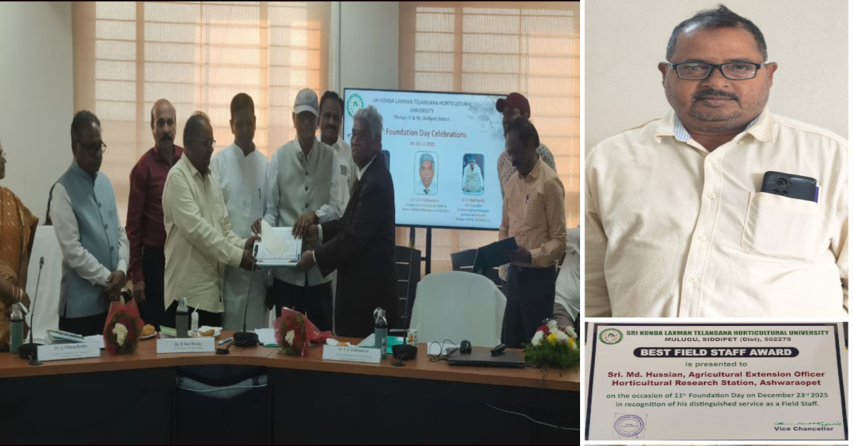 స్థానిక ఉద్యాన పరిశోధనా స్ధానం క్షేత్రస్థాయి ఉద్యోగి(ఏఈఓ) ఎండీ హుస్సేన్ కు శ్రీ కొండా లక్ష్మణ్ తెలంగాణ ఉద్యాన విశ్వవిద్యాలయం బెస్ట్ ఫీల్డ్ అవార్డ్ ప్రకటించింది. ఈ విశ్వవిద్యాలయం 11 వ వ్యవస్థాపక దినోత్సవం సందర్భంగా ఈ నెల 23 వ తేది మంగళవారం సిద్దిపేట జిల్లా ములుగు లో నిర్వహించిన వేడుకల్లో ఈ అవార్డ్ ను ఆయనకు బహూకరించారు.
