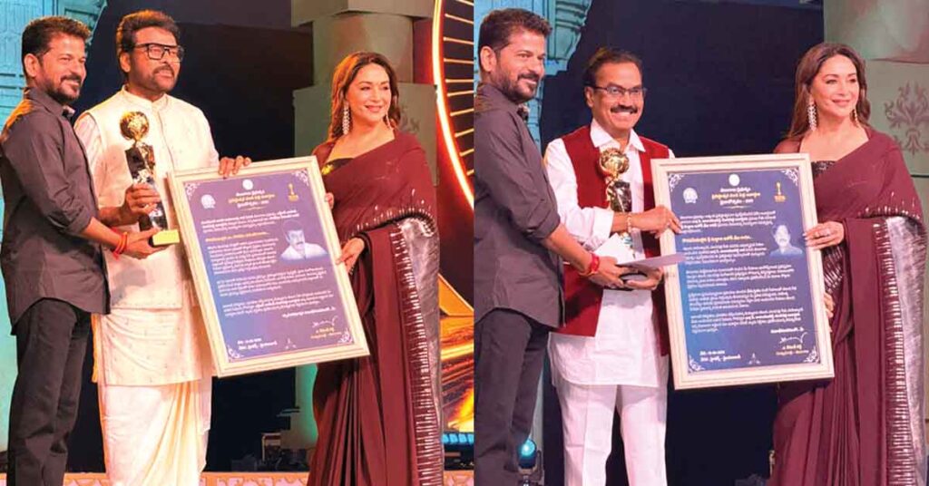 ‘ఎక్కడైతే కళలు, కళాకారులు గౌరవించబడతారో ఆ రాజ్యం, దేశం, రాష్ట్రం సుభిక్షంగా ఉంటుందనే నానుడిలోని ఆంతర్యాన్ని మన ముఖ్యమంత్రి రేవంత్రెడ్డి బాగా గ్రహించారు. సినిమా తాలుకా ప్రభావం, ప్రతాపం ఏంటో ఆయన గ్రహించి, ఎంతో పట్టుదలగా ఈ అవార్డులను అందజేశారు. రాబోయే కాలంలో హైదరాబాద్ను గ్లోబల్ ఫిల్మ్ హబ్గా తయారు చేయాలన్నది ఆయన లక్ష్యం. అంతేకాదు ఇండియన్ సినిమా అంటే హైదరాబాదే గుర్తుకు రావాలన్నది ఆయన ధ్యేయం. దీన్ని వల్ల ఉపాధి పెరిగి రాష్ట్ర రెవిన్యూతోపాటు జీడీపీలోనూ పెరుగుదల ఉంటుంది. ఈ అవార్డుల తీరుని చూస్తుంటే సీనియర్లను గౌరవిస్తూ, యువతను ప్రోత్సహిస్తోంది. ఇలాంటి అరుదైన అవకాశాన్ని కల్పించిన జ్యూరీ సభ్యులకు అభినందనలు. ఈ అవార్డులను స్ఫూర్తిగా తీసుకుని ఏపీ ముఖ్యమంత్రి చంద్రబాబు నాయుడు కూడా సినిమాలకు ప్రోత్సహం కల్పించాలని కోరుకుంటున్నాను’. – చిరంజీవి