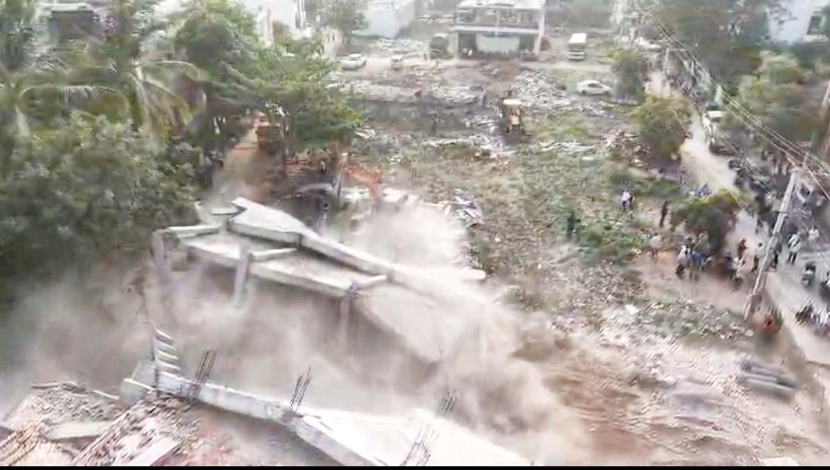 రంగారెడ్డి జిల్లా అత్తాపూర్ సర్కిల్ పరిధిలోని శాస్త్రీపురంలో హెచ్ఎండీఏ పార్కు స్థలాన్ని కబ్జా చేసి అక్రమ నిర్మాణాలు చేపట్టిన వాటిని హైడ్రా అధికారులు బుధవారం ఉదయం కూల్చివేశారు. సర్వే నెంబర్ 134/20లో 6500 గజాల హెచ్ఎండీఏ పార్కు స్థలానికి కేటాయించింది. కొన్నేండ్ల క్రితం ఈ స్థలంపై కన్నేసిన స్థానిక కబ్జారాయుళ్లు తప్పుడు పత్రాలు సృష్టించి ఆ పార్కు మొత్తం తమ ఆధీనంలోకి తీసుకున్నారు. కొద్ది రోజుల తర్వాత ప్లాట్లుగా విక్రయించి కోట్ల రూపాయలు సంపాదించారు. ఈ విషయాన్ని గతంలో తహసీల్దార్, ఆర్డీఓ దృష్టికి స్థానికులు తీసుకెళ్లినా రాజకీయ ఒత్తిళ్ల కారణంగా వారు ఏమీ చేయలేకపోయారు. అయితే ఇటీవల స్థానికులు హైడ్రా ప్రజావాణి కార్యక్ర మాల్లో పార్కుస్థలం కబ్జాకు గురైందని ఫిర్యాదు చేశారు. దాంతో రంగం లోకి దిగిన హైడ్రా అధికారులు క్షేత్రస్థాయిలో పర్యటించి తహసీల్దార్, ఆర్డీఓ అధికారులను సమన్వయం చేసి పూర్తిగా సర్వే చేయించారు. ఆ స్థలం హెచ్ఎండీఏ పార్కు స్థలంగా గుర్తించారు. దాంతో బుధవారం ఉదయం 4 గంటల నుంచి భారీ పోలీసు బందోబస్తు మధ్య ఆ పార్కు స్థలంలో నిర్మించిన నాలుగు భారీ భవనాలను జేసీబీల సాయంతో కూల్చివేశారు. కబ్జారాయుళ్ల నుంచి నిరసన, దాడులు జరిగే అవకాశం ఉండటంతో రాజేంద్రనగర్ డీసీపీ శ్రీనివాస్ ఆధ్వర్యంలో బందోబస్తు ఏర్పాటు చేశారు. నాలుగు జేసీబీల సాయంతో పార్కు స్థలంలో నిర్మించిన అన్ని కట్టడాలను కూల్చివేశారు. తర్వాత హైడ్రా ఆధ్వర్యంలో ఆ పార్కు చుట్టూ ఫినిషింగ్ ఏర్పాటు చేసి పార్కు స్థలం అని బోర్డు పెట్టారు. చాలా కాలం తర్వాత మళ్లీ పార్కు స్థలం తమకు కేటాయించినందుకు స్థానికులు హైడ్రా అధికారులకు కృతజ్ఞతలు తెలిపారు.