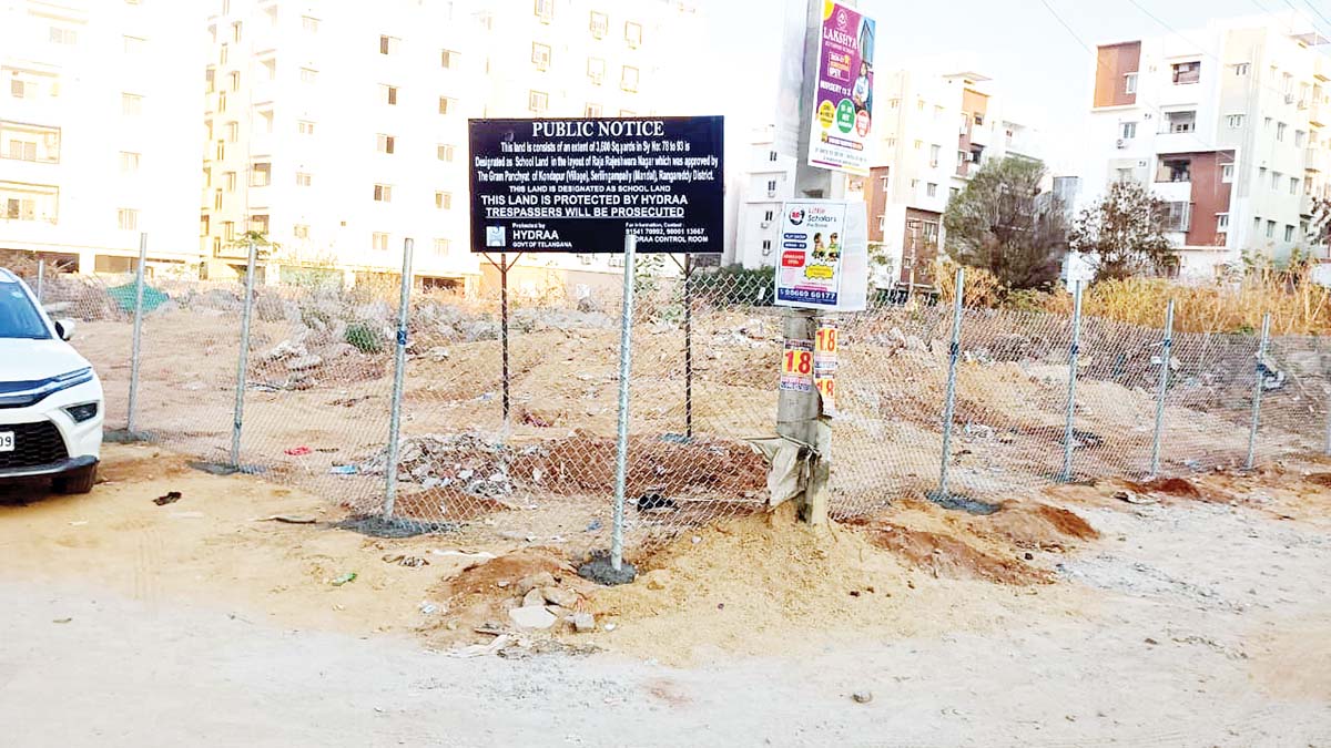 కొండాపూర్లో ఏడు ఎకరాల స్థలం చుట్టూ ఫెన్సింగ్