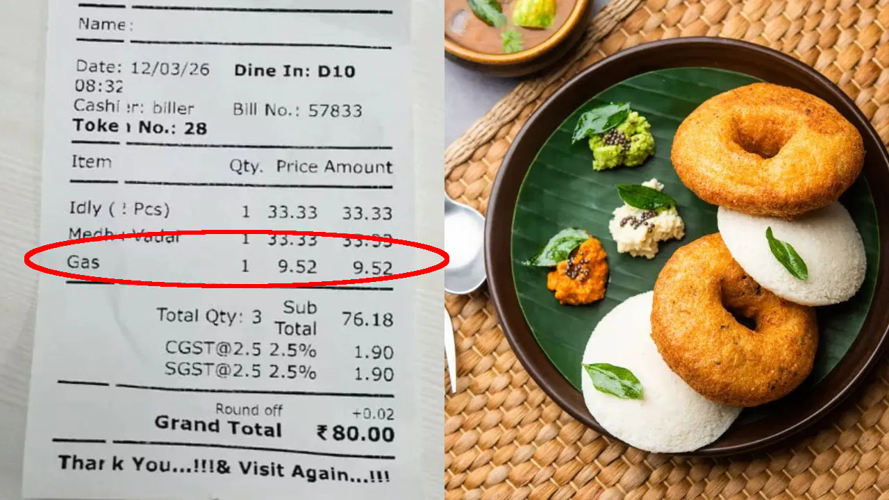 నవతెలంగాణ – హైదరాబాద్: దేశంలో కమర్షియల్ LPG కొరత ప్రభావం హోటల్ బిల్లులపై పడుతోంది. చెన్నైలోని ఓ రెస్టారెంట్లో ఇడ్లీ, వడ ధరలతో పాటు బిల్లులో ప్రత్యేకంగా ‘గ్యాస్ ఛార్జ్’ పేరుతో రూ.10 వసూలు చేయడం వైరల్ అయింది. బెంగళూరులో కూడా ఓ హోటల్ గ్యాస్ కొరత సాకుతో రూ.30 అదనంగా తీసుకున్న ఘటన బయటపడింది. కస్టమర్లు బిల్లులను సోషల్ మీడియాలో షేర్ చేయడంతో ఈ వ్యవహారం హాట్ టాపిక్గా మారింది. ఇకపై హోటళ్కు వెళ్తే GSTతో పాటు గ్యాస్ బిల్లు భారం మోయక తప్పదని నెటిజన్లు కామెంట్ చేస్తున్నారు.