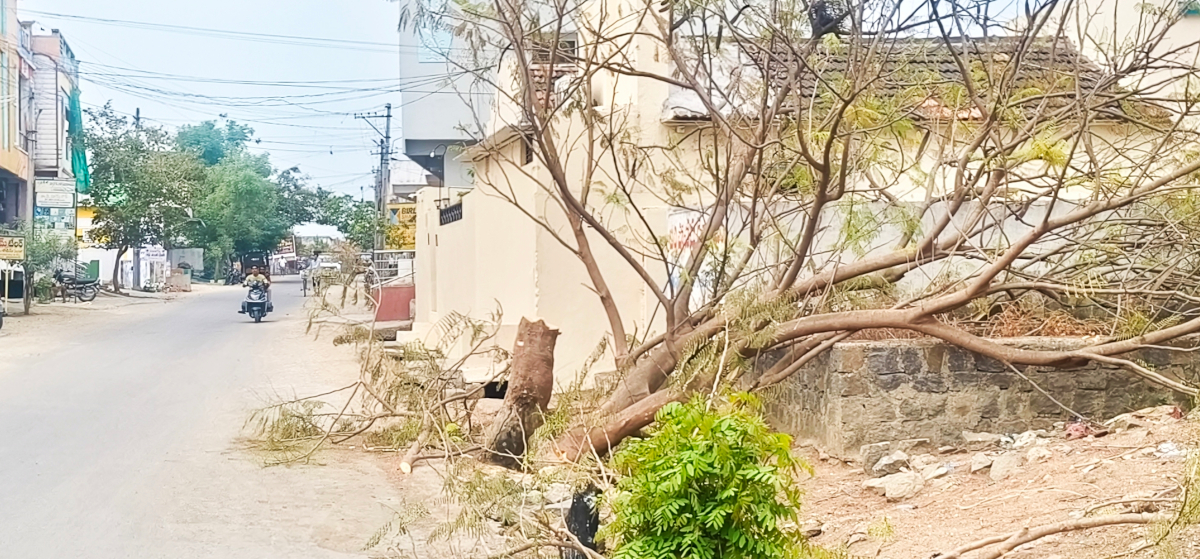 - విద్యుత్ తీగల పేరుతో పట్టణంలో యథేచ్చగా చెట్ల నరికివేత