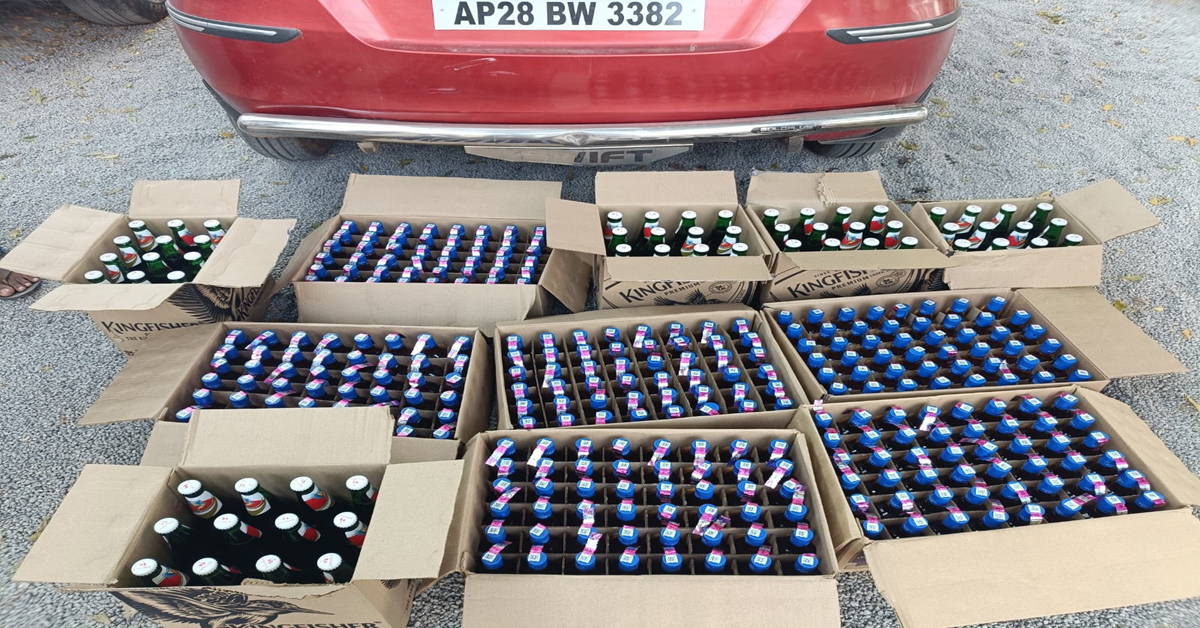 నవతెలంగాణ-చౌటుప్పల్ రూరల్: స్థానిక సంస్థల ఎన్నికల నేపథ్యంలో పోలీసులు ముమ్మరంగా తనిఖీలు చేపడుతున్నారు. ఆదివారం ధర్మోజీగూడెం దగ్గర అక్రమంగా మద్యాన్ని తరలిస్తున్న కారును పోలీసులు పట్టుకున్నారు. స్విఫ్ట్ కారు నంబర్ Ap 28 BW 3382లో అక్రమంగా తరలిస్తున్న మద్యం పట్టుబడింది. ఆ వాహనంలో IB 180ML – 288 బాటిల్స్, KF Beer 650ML – 60 బాటిల్స్ స్వాధీనం చేసుకున్నారు. డ్రైవర్ అమనిగంటి మధును పోలీసులు అదుపులోకి తీసుకున్నారు. మద్యం కొయ్యలగూడెం మహాలక్ష్మి వైన్స్ నుండి కొనుగోలు చేసి ఎన్నికల కోసం తీసుకెళ్తున్నట్లు డ్రైవర్ చెప్పాడని అధికారులు తెలిపారు. కారును, మద్యం స్టాక్ను స్వాధీనం చేసుకుని మధు,వైన్స్ యజమాని పై కేసులు నమోదు చేశారు.