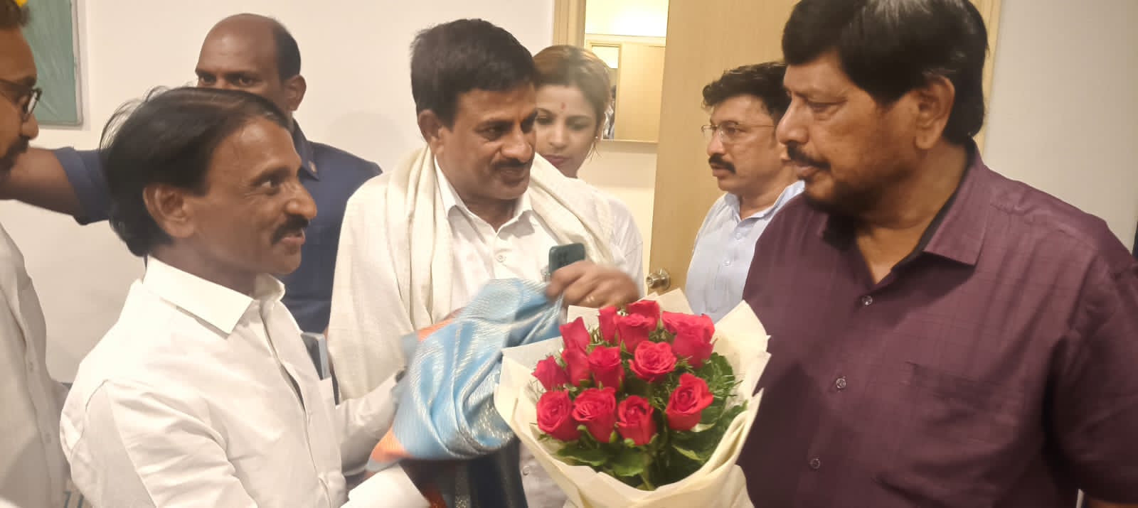 కేంద్ర సామాజిక న్యాయం శాఖ స్వతంత్ర మంత్రి రాందాస్ అతవలేని కలిసి సామాజిక న్యాయం కోసం, రాజ్యాంగ పరమైన హక్కుల కోసం ఓబీసీ లకు రావాల్సిన రాజకీయ, ఆర్థిక వాటా ను అమలు చేయాలని కోరిన తెలంగాణ ముదిరాజ్ ప్రభుత్వ ఉద్యోగుల సంఘం రాష్ట్ర ఉపాధ్యక్షులు డాక్టర్ భట్టు విఠల్ ముదిరాజ్, ఆర్.టి.ఐ రాష్ట్రఉపాధ్యక్షులు డాక్టర్ శ్రీనివాస్ కలిసి వివరించారు. ఈ సందర్భంగా వారు మాట్లాడుతూ ఆదివారం హైదరాబాద్ లోని హరిత భవన్ జరిగిన సమావేశంలో ఆయన ను కలిసి మాట్లాడినట్టు వివరించారు.