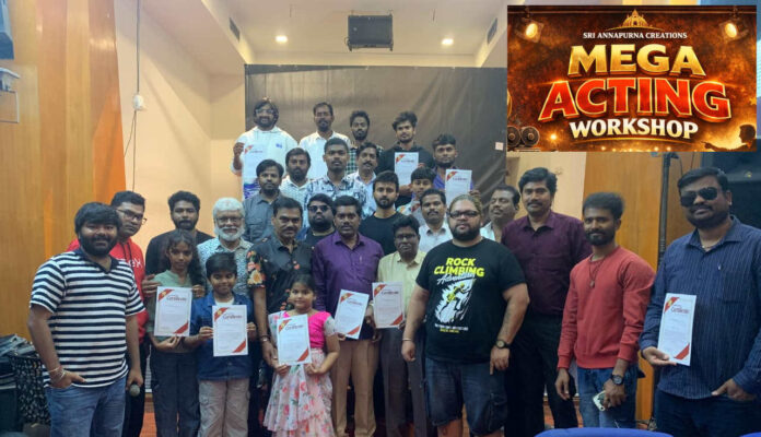 నవతెలంగాణ హైదరాబాద్ : వెండితెరపై రాణించాలనే ఆకాంక్షతో వచ్చే ఔత్సాహిక నటీనటుల కోసం ‘శ్రీ అన్నపూర్ణ క్రియేషన్స్` ఆధ్వర్యంలో రవీంద్రభారతిలోని పైడి జైరాజ్ ప్రివ్యూ థియేటర్‌లో నిర్వహించిన ఒక రోజు శిక్షణ శిబిరం (Acting Workshop) విజయవంతమైంది. 80 మంది యువతీ, యువకులు పాల్గొన్న ఈ కార్యక్రమంలో సినీ ప్రముఖులు అతిథులుగా విచ్చేసి, నటనలోని మెళకువలను వివరించారు.