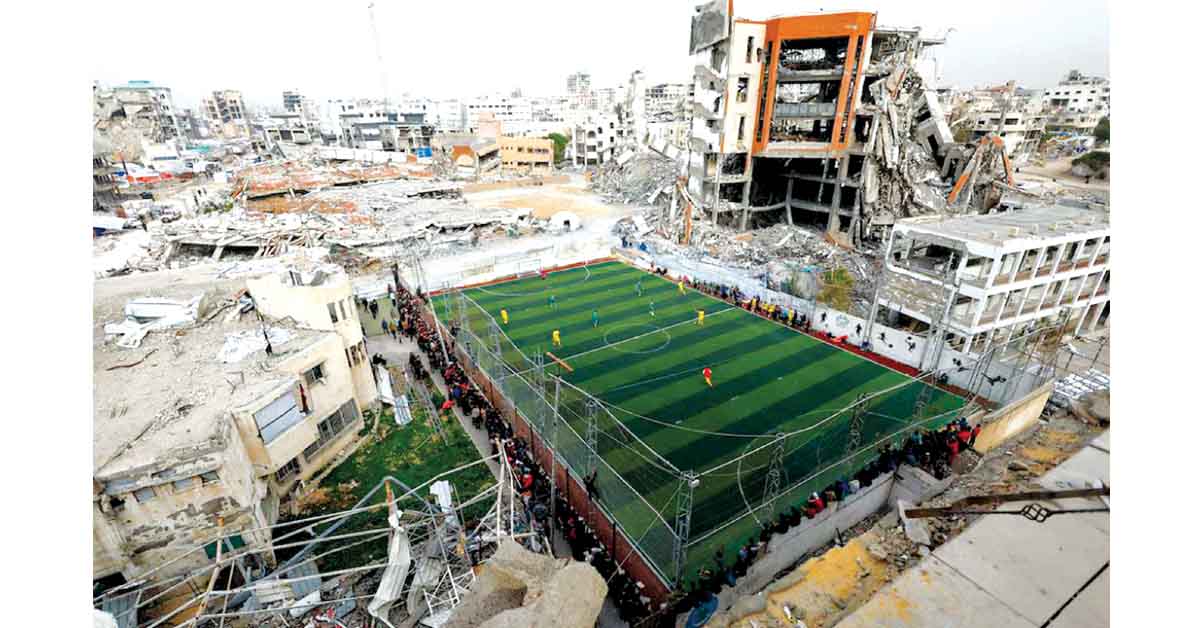 శిథిల భవనాలు, కూలిన గోడల నడుమే ఓ మినీ సాకర్ గ్రౌండ్ను సిద్ధం చేసిన గాజా ఫుట్బాల్ అసోసియేషన్ టోర్నమెంట్ను నిర్వహించింది. ఫుట్బాల్ మ్యాచ్లో గోల్స్ మోత లేకపోయినా, గోల్ లేకుండా డ్రాగా ముగిసినా.. ప్రేక్షకులు ఏమీ నిరాశ చెందలేదు. సాధారణ జీవనం వైపుగా మళ్లీ అడుగులు పడేందుకు ఫుట్బాల్ నిలుస్తుందనే నమ్మకం ప్రజల్లో కనిపిస్తోంది. ‘ప్రజలు ఉదయం నీళ్ల కోసం వెతుకుతారు. ఆహారం కోసం అన్వేషిస్తారు. బతుకు కాస్త కష్టంగా మారింది. అయినా, సాకర్ మైదానంలో అడుగుపెట్టగానే మనలో మిగిలిన కాసింత ఆనందం బయటకొస్తుంది. యుద్ధభీతి నడుమ ఫుట్బాల్ గ్రౌండ్లోకి రావటం అయోమయం, బాధ కలిగిస్తున్నా.. సంతోషంగా ఉంది.