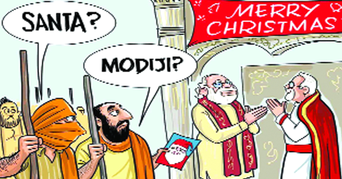 డిసెంబరు 22న ఢిల్లీలోని లాజ్‌పత్‌నగర్‌ ఏరియాలో కొంతమంది మహిళలు, పిల్లలు, శాంతాక్లాజ్‌ టోపీలు ధరించి క్రిస్మస్‌ వేడుకలు జరుపుకుంటూ ఉంటే, ఒక రౌడీ మూకవచ్చి, వాళ్లని బెదిరించి వెళ్లగొట్టారు. సెంట్‌మెరీస్‌ స్కూల్‌, పానిగ్గాన్‌, నల్‌చారిలో వీహెచ్‌పి, భజరంగ్‌దళ్‌ మూక వెళ్లి క్రిస్‌మస్‌ అలంకరణను కాల్చేసి జైశ్రీరాం అనే నినాదాలు చేశారు. ఛత్తీస్‌గఢ్‌ రారుపూర్‌లోని ఒక మాల్‌పై దాడిచేసి క్రిస్మస్‌ అలంకరణ పగులగొట్టి తగులబెట్టారు. ఒరిస్సాలో క్రిస్‌మస్‌, శాంతాక్లాస్‌ టోపీలను విక్రయిస్తున్న వీధి పేద అమ్మకందార్లను బెదిరిస్తూ, ఇది క్రిస్టియన్‌ దేశం కాదు, హిందూదేశం, ఇక్కడ అమ్మవద్దని వారిని తరిమేసారు కొందరు కాషాయ మూకలు. ఇంకా ఘోరమైన విషయాలేమిటంటే, సత్యనిష్ట ఆర్య అనే హిందూ అవతారమెత్తిన ఒక కాషాయధారి, మూకతో కలిసి ప్రార్థన చేయిస్తున్న పాస్టర్‌ దగ్గరికి వెళ్లి మైకులాక్కుని, ‘మీ జీసస్‌ ఎలా పుట్టాడో చెప్పు’, మేరీకి ఎలా కడుపు అయిందో చెప్పమని అసహ్యంగా ప్రశ్నించాడు. ఒక మహిళ అడ్డువచ్చి వివరిస్తుంటే, ‘నువ్వెలా పుట్టావో నీకు తెలుసా’ అని కించపరిచాడు. ఛత్తీస్‌గఢ్‌ బదెటివ్డా గ్రామంలో క్రిస్టియన్‌ మతం పుచ్చుకున్న ఓ పెద్దాయన చనిపోతే, అతన్ని హిందూ ఆచారంలోనే అంత్యక్రియలు జరపాలని అడ్డుకుని దౌర్జన్యం చేశారు.