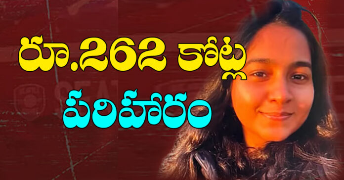 న‌వ‌తెలంగాణ‌-హైద‌రాబాద్ : అమెరికాలో పోలీసు అధికారి నిర్లక్ష్యం కారణంగా తెలుగు విద్యార్థిని జాహ్నవి కందుల మృతి చెందిన కేసులో కీలక పరిణామం చోటుచేసుకుంది. ఆమె కుటుంబానికి 29 మిలియన్‌ డాలర్ల (భారత కరెన్సీలో దాదాపు రూ.262 కోట్లు) పరిహారం చెల్లించేందుకు సియాటెల్‌ ఒప్పందం కుదుర్చుకుంది. ఈ మేరకు సిటీ అటార్నీ ఎరికా ఇవాన్స్‌ బుధవారం (అమెరికా కాలమానం ప్రకారం) ప్రకటన విడుదల చేశారు.