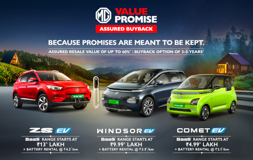 ఈ కొత్త, ప్రత్యేకమైన కార్యక్రమం ద్వారా, వినియోగదారులు ఎంచుకునే ప్లాన్‌ను బట్టి MG EV యజమానులు 3, 4 లేదా 5 సంవత్సరాల తరువాత హామీ ఉన్న రీసేల్ విలువను పొందగలుగుతారు.* ఈ కార్యక్రమం, 3 సంవత్సరాల యాజమాన్యం పూర్తైన తరువాత 60% బైబ్యాక్ విలువను హామీ ఇస్తున్న MG మోటార్ యొక్క ఇప్పటికే ఉన్న ఆఫర్‌పై ఆధారపడి రూపొందించబడింది. ఇది ఏ లోన్ లేదా ఫైనాన్స్ పథకంతోనూ సంబంధం లేకుండా స్వతంత్రంగా పనిచేస్తుంది. దేశంలో తొలిసారిగా, కమర్షియల్ వినియోగంలో ఉన్న MG ZS EV యజమానులు కూడా, 3 సంవత్సరాల లోపు వాహనాలు లేదా సంవత్సరానికి గరిష్టంగా ₹60,000 కిలోమీటర్ల మైలేజ్ ఉన్న వాహనాల కోసం రీసేల్ విలువ ప్రయోజనాలకు అర్హులు అవుతారు.