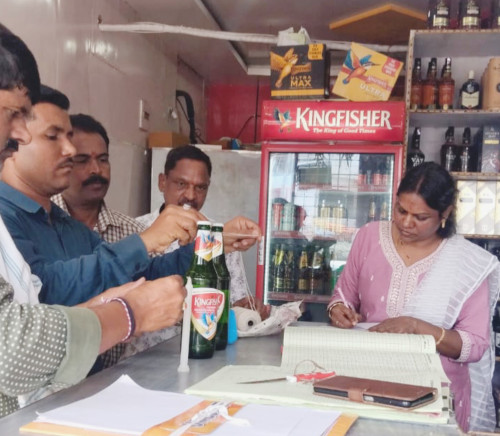 మల్లికార్జున వైన్ షాప్ లో ఎక్సైజ్ సీఐ తనిఖీ