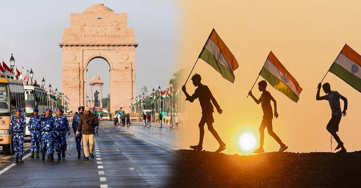 సోమవారం నాడు దేశం 77వ గణతంత్ర దినోత్సవ వేడుకలను జరుపుకోనుంది. రాష్ట్రపతి ద్రౌపది ముర్ము కర్తవ్యపథ్ నుండి ఈ వేడుకలకు ప్రారంభిస్తారు. యూరోపియన్ కౌన్సిల్ అధ్యక్షురాలు ఆంటోనియో కోస్టా, యూరోపియన్ కమిషన్ అధ్యక్షురాలు ఉర్సులా వాన్ డెర్ లేయన్ ముఖ్య అతిథులుగా హాజరుకానున్నారు. రాష్ట్రపతి భవన్ నుంచి జాతీయ యుద్ధ స్మారకచిహ్నం వరకు విస్తరించి ఉన్న కర్తవ్య పథ్ 150 ఏండ్ల జాతీయ గీతం వందేమాతరం, దేశ అపూర్వమైన పురోగతి, బలమైన సైనిక పరాక్రమం, దాని గొప్ప సాంస్కృతిక వైవిధ్యం, అన్ని వర్గాల ప్రజల భాగస్వామ్యంతో కూడిన మరపురాని సమ్మేళనాన్ని ప్రదర్శించడానికి అలంకరించారు.