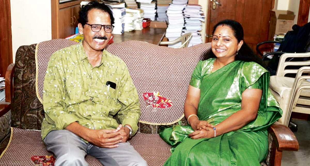 తెలంగాణ మేధావులతో జాగృతి అధ్యక్షులు కల్వకుంట్ల కవిత వరసగా సమావేశమవుతున్నారు. ఈ నెల 25నుంచి నిర్వహించనున్న జాగృతి జనంబాట కార్యక్రమం ప్రారంభానికి ముందు మేధావులను కలిసి వారి సలహాలు, సూచనలు తీసుకుంటున్నారు. ఇందులో భాగంగా మంగళవారం హైదరాబాద్లో వీక్షణం ఎడిటర్ ఎన్ వేణుగోపాల్తో భేటీ అయ్యారు. ఈ సందర్భంగా ప్రజలెదుర్కొంటున్న సమస్యలు, క్షేత్ర స్థాయిలో ఉన్న పరిస్థితులను చర్చించారు.