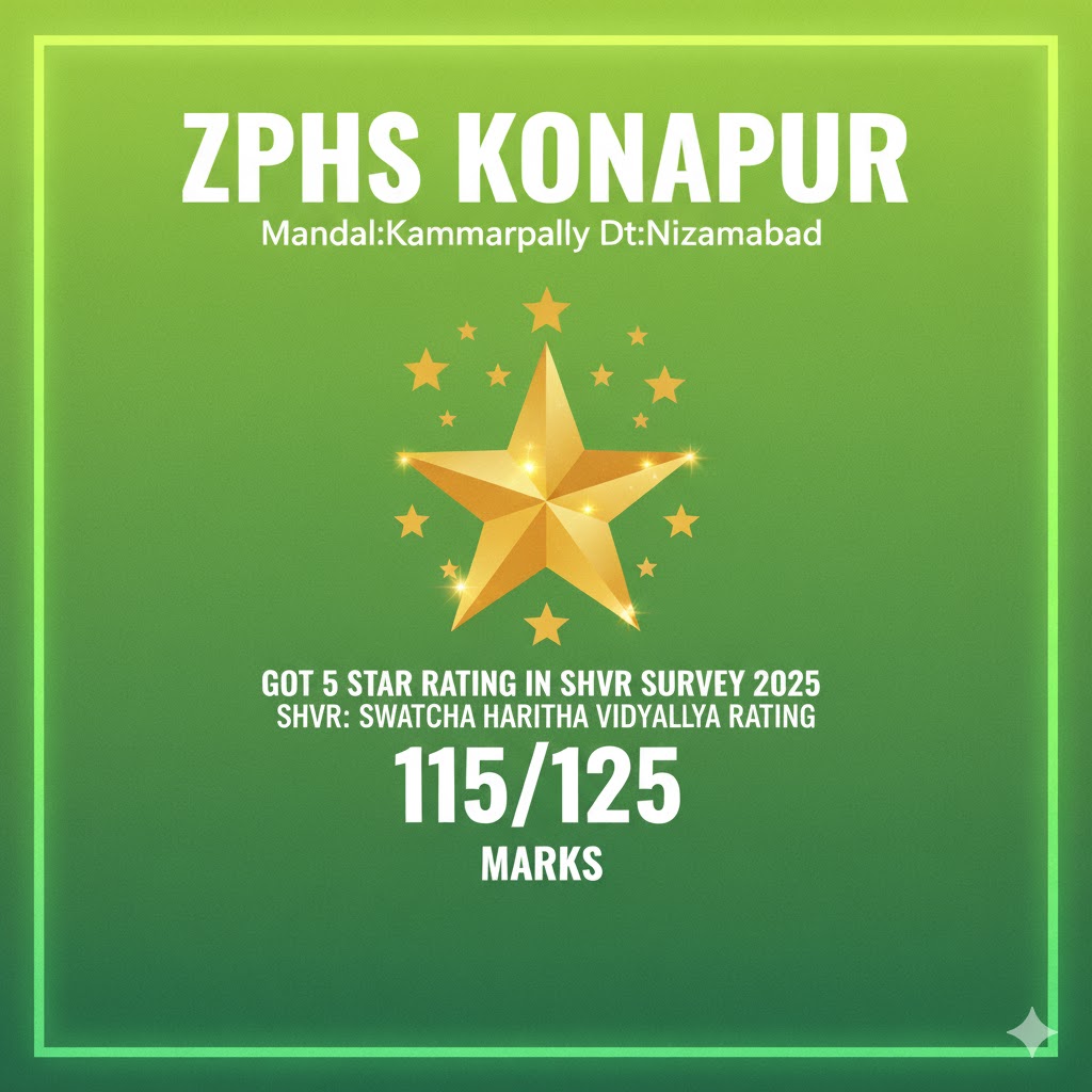 మండలంలోని కోనాపూర్ పాఠశాల స్వచ్ఛ హరిత విద్యాలయ 5 స్టార్ రేటింగ్ కు ఎంపికైనట్లు పాఠశాల ప్రధానోపాధ్యాయులు చౌడారపు రాంప్రసాద్ బుధవారం తెలిపారు. సురక్షితమైన తాగునీరు, వాన నీటి సంరక్షణ పథకం, మరుగుదొడ్లు, పరిశుభ్రత వినియోగం, భోజన పథకం నిర్వహణలో పరిశుభ్రత పాటించడం, పాఠశాల పరిసరాల పరిశుభ్రత, ప్లాస్టిక్ వినియోగం తగ్గింపు, పాఠశాలలో కిచెన్ గార్డెన్ ఏర్పాటు, పాఠశాలలో ఎకో క్లబ్ ఏర్పాటు, కంపోస్ట్ ఎరువు తయారీ మొదలైన అంశాలను పరిగణనలోకి తీసుకొని ఆన్ లైన్ ప్రశ్నావళి ద్వారా ఎంపిక చేసినట్లు ఆయన తెలిపారు. 125 మార్కులకు గాను కోనాపూర్ పాఠశాలకు 115 మార్కులు రావడంతో 5స్టార్ రేటింగ్ కు ఎంపికైనట్లు తెలిపారు. ఉపాధ్యాయులందరి సమిష్టి కృషి వల్ల 5 స్టార్ రావడం జరిగిందన్నారు. ఇందుకు సహకరించిన ఉపాధ్యాయులకు, గ్రామస్తులకు ఆయన కృతజ్ఞతలు తెలిపారు. కాగా పాఠశాలకు స్వచ్ఛ హరిత విద్యాలయ 5 స్టార్ రేటింగ్ రావడం పట్ల పలువురు గ్రామస్తులు హర్షం వ్యక్తం చేశారు. ఇందుకు కృషి చేసిన పాఠశాల ప్రధానోపాధ్యాయులు రాంప్రసాద్, ఉపాధ్యాయులకు అభినందనలు తెలిపారు.