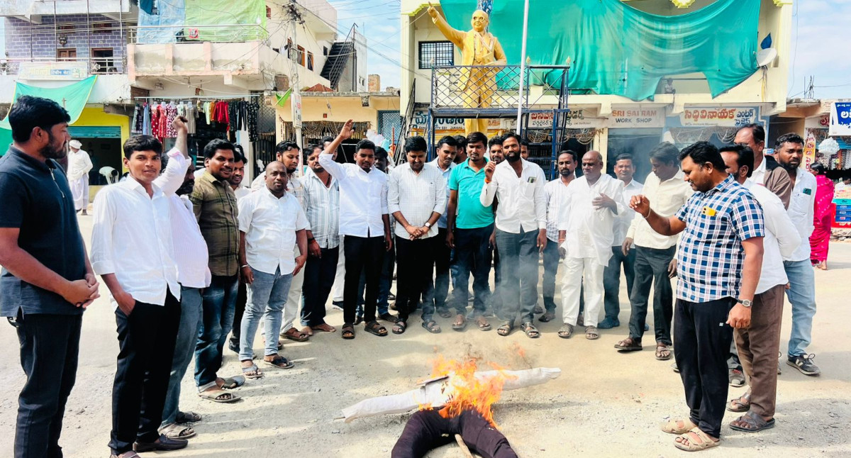 అంబేడ్కర్ చౌరస్తాలో కేటీఆర్ దిష్టిబొమ్మ దహనం