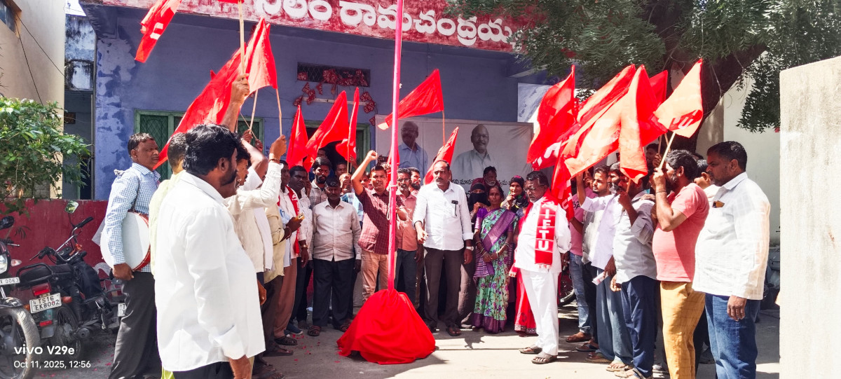 మరో వక్త సిపిఐ(ఎం ఎల్) న్యూడెమోక్రసీ నగర కార్యదర్శి నీలం సాయిబాబా మాట్లాడుతూ ఐక్య ఉద్యమాల ద్వారా కార్మిక హక్కులను కాపాడుకోవాలని అన్నారు. కులం, మతం పేరుతో ప్రజలను విడగొట్టి రాజకీయాలు చేస్తూ ఎంపీ , ఎమ్మెల్యే లుగా గెలుస్తున్నారని ప్రజలను మాత్రం బిచ్చగాల్లుగా చూస్తున్నారని ఆవేదన వ్యక్తం చేశారు. ఈ విధానాలకు వ్యతిరేకంగా ఉద్యమించాలని పిలుపునిచ్చారు. POW జిల్లా కార్యదర్శి భారతి, IFTU జిల్లా సహాయ కార్యదర్శి జేపీ గంగాధర్ లు ప్రసంగించారు. ఈ కార్యక్రమంలో IFTU నగర మాజీ అధ్యక్షులు ఎల్ బి రవి, నగర కార్యదర్శి ఎం శివ కుమార్, మల్లిఖార్జున్, ఎం. మోహన్, నర్సింగ్ రావు, అబ్దుల్, గోపాల్ తదితరులు పాల్గొన్నారు.