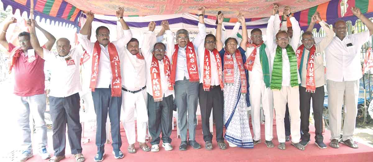 సంయుక్త కిసాన్ మోర్చా రాష్ట్ర కన్వీనర్లు టి.సాగర్, పశ్య పద్మ
