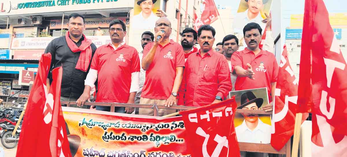 ప్రపంచ దేశాలపై బందిపోటుగా మారిన అమెరికన్ సామ్రాజ్యవాదాన్ని ఎదిరించాలని సీఐటీయూ అధ్యక్షకార్యదర్శులు చుక్క రాములు, పాలడుగు భాస్కర్ అన్నారు. సోమవారం భగత్ సింగ్ వర్ధంతి సందర్భంగా సీఐటీయూ ఆధ్వర్యంలో ”సంకల్ప యాత్ర” నిర్వహించారు. సంగారెడ్డిలోని పాత బస్టాండ్ నుంచి కలెక్టరేట్ ఎదుట ఉన్న దొడ్డి కొమురయ్య విగ్రహం వరకు ర్యాలీ నిర్వహించారు. ఈ సందర్భంగా ఆయన మాట్లాడుతూ.. భగత్ సింగ్ కోరుకున్న సమసమాజం కోసం కార్మికులు, యువత పోరాడాలని పిలుపునిచ్చారు. లౌకిక భారతదేశాన్ని కాపాడుకునేందుకు మతోన్మాద శక్తులను పెకిలిద్దామని పిలుపునిచ్చారు. మేడ్చల్ మల్కాజిగిరి జిల్లా చర్లపల్లిలో సీఐటీయూ ఆధ్వర్యంలో నిర్వహించిన ర్యాలీలో రాష్ట్ర ప్రధాన కార్యదర్శి పాలడుగు భాస్కర్ పాల్గొన్నారు. ఈ కార్యక్రమంలో ప్రజా సంఘాల నాయకలు, వివిధ పరిశ్రమల కార్మికులు పాల్గొన్నారు.