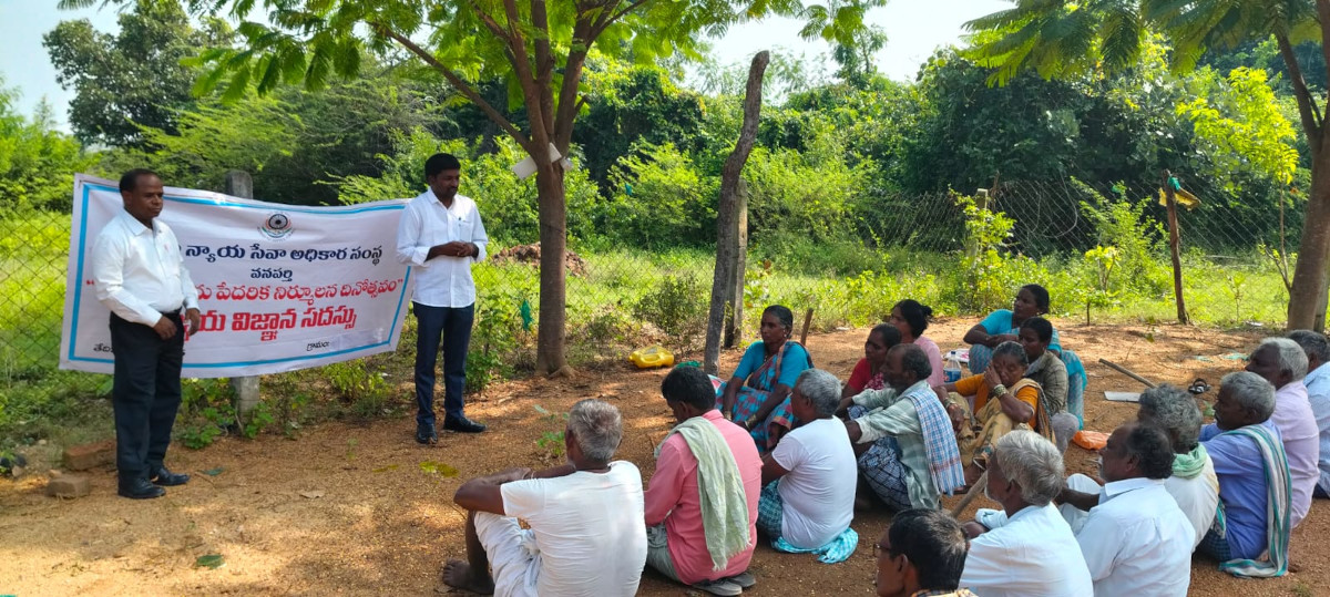 పేదరిక నిర్మూలనే లక్ష్యంగా భావి తరాల పట్ల అవగాహన కలిగి ఉండాలని డిప్యూటీ లీగల్ ఎయిడ్ డిఫెన్స్ కౌన్సిల్ డి కృష్ణయ్య అన్నారు. జిల్లా న్యాయ సేవ అధికార సంస్థ జిల్లా కార్యదర్శి వి రజని ఆదేశానుసారం శుక్రవారo అంతర్జాతీయ పేదరిక నిర్మూలన దినోత్సవం ను పురస్కరించుకొని వనపర్తి జిల్లా కేంద్రంలో తాడిపర్తి, అప్పాయిపల్లి గ్రామాల్లో పేదరిక నిర్మూలన పై అవగాహన సదస్సులు నిర్వహించారు. ఈ సదస్సులో ఆయన మాట్లాడుతూ రైతులు, కార్మికులు, గ్రామస్థులు వారి పిల్లల కు మంచి విద్యను అభ్యసించేలా తోడ్పడి, వారిని ఉన్నత స్థాయిలో ఉండేలా కృషి చేయడం విద్య వల్లనే సాధ్యమవుతుందని తెలియజేశారు. ప్రభుత్వాలు అందించే సంక్షేమ, ప్రయోజనాల ను దిగువ మధ్య తరగతి ప్రజలు సద్వినియోగం చేసుకోవాలని పేర్కొన్నారు. ఉచిత న్యాయ సలహాల కోసం 15100 టోల్ ఫ్రీ నెంబర్ ను సంప్రదించవచ్చని తెలిపారు. ఈ కార్యక్రమంలో అసిస్టెంట్ లీగల్ ఎయిడ్ డిఫెన్స్ కౌన్సిల్ రఘు, పంచాయతీ కార్యదర్శి సాయి కృష్ణా, గ్రామాల ప్రజలు పాల్గొన్నారు.