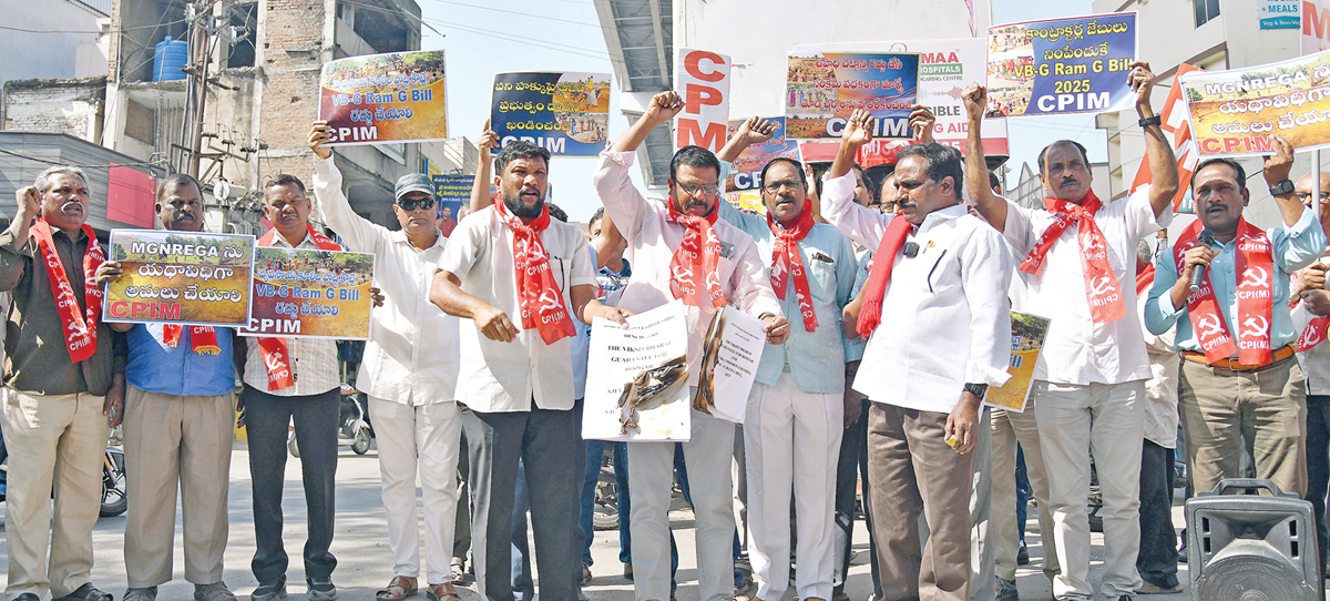 డిమాండ్ను తీర్చడానికి బడ్జెట్ కేటాయింపులు పెంచడం తప్పనిసరి అనీ, అయితే కేంద్ర ప్రభుత్వం 90 శాతం ఉన్న తన వాటాను 60 శాతానికి కుదించడం అంటే చట్టాన్ని నిర్వీర్యం చేయడమేనని విమర్శించారు. ఓ వైపు రాష్ట్ర ప్రభుత్వాల ఆర్థిక వనరులను దెబ్బతీస్తూ 40 శాతం నిధులను రాష్ట్ర ప్రభుత్వాలే భరించాలని కేంద్రం ముసాయిదా బిల్లులో పెట్టడం దుర్మార్గమన్నారు. పనిదినాలు పెంచుతామని కేంద్రం చెప్పిన దాంట్లో చిత్తశుద్ధి లేదన్నారు. కేంద్రం నిబంధనలతో కోట్లాది మంది తమ ఉపాధిని కోల్పోయే ప్రమాదం ఉందని ఎత్తిచూపారు. ఉపాధి హామీ చట్టాన్ని బలోపేతం చేయాలనీ, పనిదినాలను 200 రోజులకు పెంచాలని డిమాండ్ చేశారు. అసలు చట్టంలోని నిబంధనలను నీరుగార్చడానికి, దాని ద్వారా హామీ ఇవ్వబడిన పని హక్కును పరిమితం చేయడాన్ని ఎత్తిచూపారు. మోసపూరిత బిల్లును తక్షణమే ఉప సంహరించుకోవాలని డిమాండ్ చేశారు. ఈ కార్యకమంలో సీపీఐ(ఎం) రాష్ట్ర కార్యదర్శివర్గ సభ్యులు టి.సాగర్, రాష్ట్ర నాయకులు వెంకట్రాములు, భూపాల్, బి.ప్రసాద్, ఆశయ్య, శ్రీరాంనాయక్, ఉడుత రవీందర్, ఎం.శ్రీనివాస్, బాబూరావు, వెంకటేశ్, కోట రమేశ్, విజయ్, పద్మ, ప్రజాసంఘాల నాయకులు పాల్గొన్నారు.