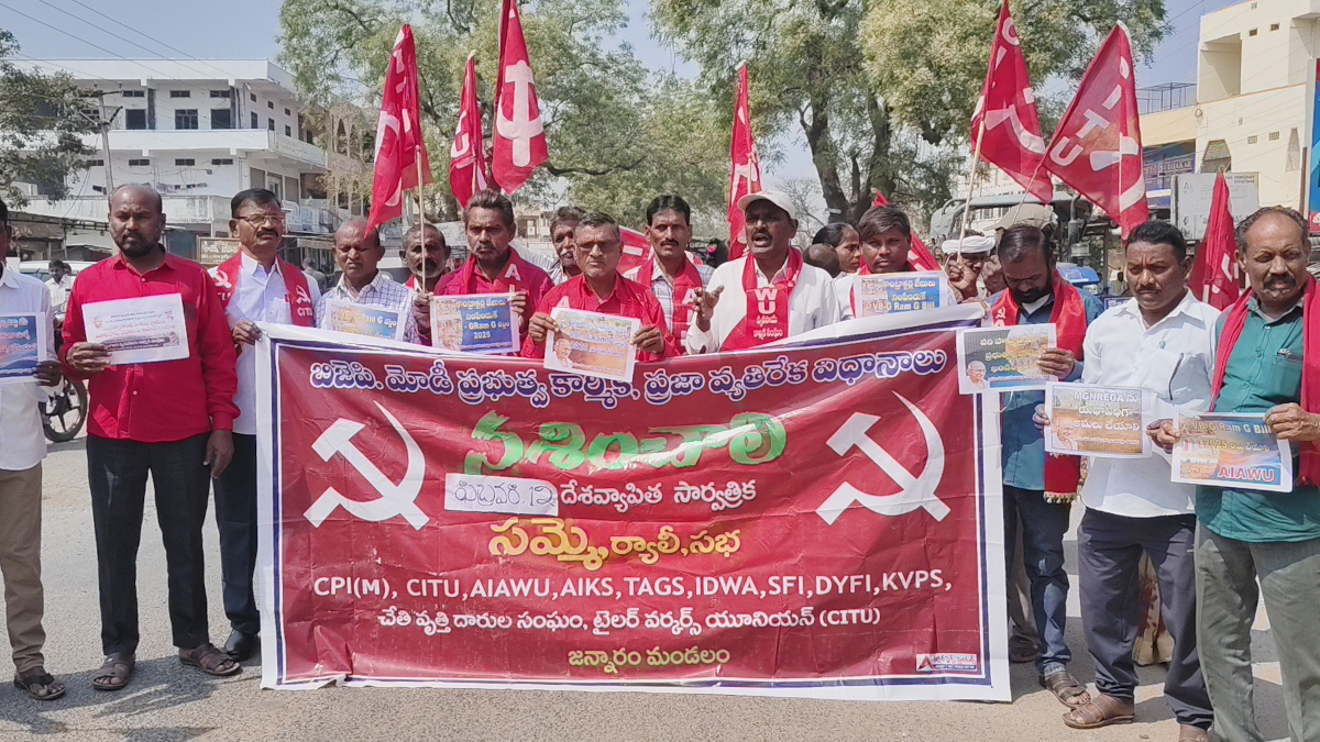 పని హక్కులపై బిజెపి ప్రభుత్వం దాడిని తీవ్రంగా ఖండించాలని సూచించారు. వి బి – జి రామ్ జి చట్టం 2025 ను రద్దు చేయాలని, డిమాండ్ చేస్తున్నామన్నారు. ఎంజిఎన్ఆర్ ఈజిఏ ను యధావిధిగా అమలు చేయాలని లేకుంటే కేంద్ర ప్రభుత్వం ప్రజా ఆగ్రహానికి లోను కాక తప్పదు అన్నారు. కేంద్ర ప్రభుత్వం కార్మిక వ్యతిరేక, కార్పొరేట్ అనుకూల విధానాలను ఉపసంహరించుకోవాలని లేబర్ కోడ్స్ రద్దు అయ్యే వరకు కార్మికులంతా సమరశీల పోరాటాలకు సిద్ధం కావాలని కోరారు.