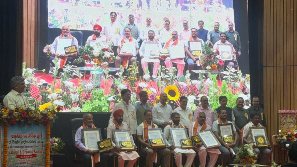 నవతెలంగాణ-హైదరాబాద్ : నల్లగొండ జిల్లా దేవరకొండ ప్రాంతం పోలేపల్లి గ్రామ రైతు లోకసాని పద్మా రెడ్డికి జాతీయస్థాయిలో అవార్డు వచ్చింది. ఈనెల 24 , 25 తేదీల్లో ఘజియాబాద్ లో నేషనల్ సెంటర్ ఫర్ ఆర్గానిక్ అండ్ నాచురల్ ఫార్మింగ్ సెంటర్లో జరిగిన రెండు రోజుల సెమినార్ మరియు ఎగ్జిబిషన్ సందర్భంగా కేంద్ర ప్రభుత్వం ఆయనకు చాంపియన్ ఫార్మర్ అవార్డును ప్రకటించింది. పోలేపల్లి లో తన వ్యవసాయ క్షేత్రంలో 12 ఎకరాల విస్తీర్ణంలో కుంకుడు సాగు చేయడం ద్వారా లోకసాని పద్మా రెడ్డికి దేశవ్యాప్తంగా గుర్తింపు వచ్చింది . కేంద్ర వ్యవసాయ సంక్షేమ శాఖ ఆధ్వర్యంలో ఘజియాబాద్ లో రెండు రోజులపాటు ఆర్గానిక్, న్యాచురల్ ఫామింగ్ పై జరిగిన సెమినార్ లోనూ ఆయన మాస్టర్ ట్రైనర్ గా వ్యవహరించారు. మొదటి నుంచి సహజ వ్యవసాయం ద్వారానే, ఆయన ఎలాంటి రసాయనాలు, పురుగుమందులు వినియోగించకుండా బత్తాయి , జామ, కుంకుడు , ఉసిరి , సీతాఫలం , కొబ్బరి తోటలను సాగు చేస్తున్నారు. ఆర్గానిక్ ఫార్మింగ్ లో లోకసాని పద్మా రెడ్డి చేస్తున్న కృషిని గుర్తించి కేంద్ర వ్యవసాయ సంక్షేమ శాఖ ఆధ్వర్యంలోని నేషనల్ సెంటర్ ఫర్ ఆర్గానిక్ అండ్ నేచురల్ ఫార్మింగ్ రీసర్చ్ సెంటర్ ఆయనకు జాతీయస్థాయిలో ఛాంపియన్ ఫార్మర్ అవార్డును ప్రకటించింది . ఇప్పటికే లోకసాని పద్మా రెడ్డికి మిలియనీర్ ఫార్మర్ అవార్డ్ , వనమాలి అవార్డులు వచ్చాయి. జాతీయస్థాయిలో ఛాంపియన్ ఫార్మర్ అవార్డు అందుకున్న లోకసాని పద్మా రెడ్డికి స్నేహితులు, బంధువులు అభినందనలు తెలిపారు.