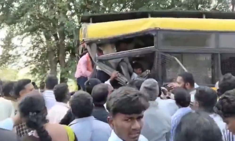నవతెలంగాణ-హైదరాబాద్ : చిత్తూరు జిల్లాలో ఘోర రోడ్డు ప్రమాదం జరిగింది. SR పురం సమీపంలోని గ్రామాల నుండి స్కూల్ బస్సు విద్యార్థులను తీసుకుని జీడీనెల్లూరు వైపు వెళ్తుండగా బీసీ కాలనీ వద్ద లారీ వెనుక నుండి ఢీకొట్టింది. ఈ ప్రమాదంలో ఏడుగురు విద్యార్థులు గాయపడగా.. ఓ విద్యార్థి నాలుక తెగిపోయినట్లు తెలుస్తోంది. తీవ్రంగా గాయపడిన విద్యార్థులను స్థానికులు ఆసుపత్రికి తరలించారు. మరిన్ని వివరాలు తెలియాల్సి ఉంది.