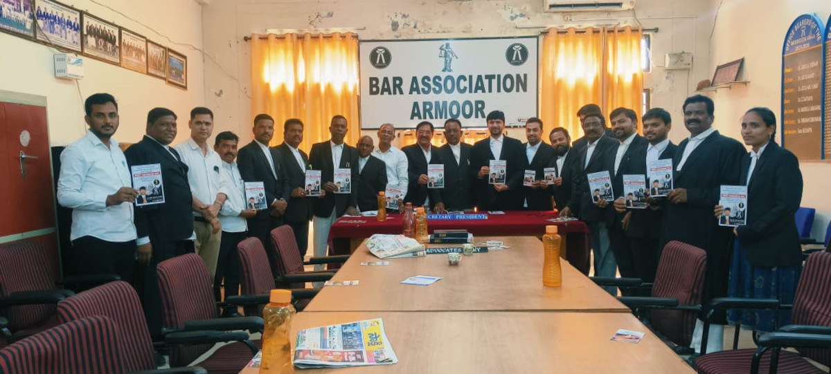 పట్టణంలోని కోర్టు ప్రాంగణంలో బార్ అసోసియేషన్ అధ్యక్షులు జక్కుల శ్రీధర్, ప్రధాన కార్యదర్శి జేసు అనిల్, కోశాధికారి చైతన్య ల ఆధ్వర్యంలో బుధవారం సమావేశం నిర్వహించినారు. బార్ సభ్యులను కలిసి ఈ జనవరి 30న జరగనున్న తెలంగాణ బార్ కౌన్సిల్ మెంబర్ల ఎన్నికపై జరుగుతున్న ప్రచారంలో భాగంగా ఆర్మూర్ బార ఆసోసియేషన్ కలిసి మెంబర్గా ఎన్నుకోవాలని ఓటు వేసి గెలిపించాలని అడ్వకేట్ భాస్కర్ మల్లెల అన్నారు. ఈ సందర్భంగా మాట్లాడుతూ.. గత 10 సంవత్సరాలుగా సుదీర్ఘంగా న్యాయవాద వృత్తిలో ఉంటూ జిసిజి ఏ బి పి డి జె లాంటి అన్ని ఉన్నతమైన పరీక్షలకు ఉచితంగా కోచింగ్ను ఇండియన్ లీగల్ ప్రొఫెషనల్ అసోసియేషన్ ఆధ్వర్యంలో అందించడం జరిగింది దానితోపాటు అనేక సామాజిక కార్యక్రమాలలో భాగస్వామ్యంగా ఉంటూ చురుగ్గా పాల్గొనడం జరిగింది న్యాయవాదుల హక్కుల కొరకు వారి సంరక్షణ కొరకు చట్టాల రూపకల్పనలో కీలకమైనటువంటి బాధ్యతను కలిగి ఉన్నటువంటి నాకు మీ అమూల్యమైనటువంటి మొదటి ప్రాధాన్యమైన ఓటును వేసి గెలిపించాలని కోరడం జరిగింది. ఈ కార్యక్రమంలో డి ఏ ఆర్ సి రిసోర్స్ పర్సన్ శ్రీధర్ బట్టు , బార్ అసోసియేషన్ సీనియర్ సభ్యులు జి జి రామ్, తెడ్డు నర్సయ్య, గంటా విప్లవ్ కిరణ్ , శ్యామ్, రాజేందర్, గణేష్, బేతు జగదీష్ , తదితరులు పాల్గొన్నారు.