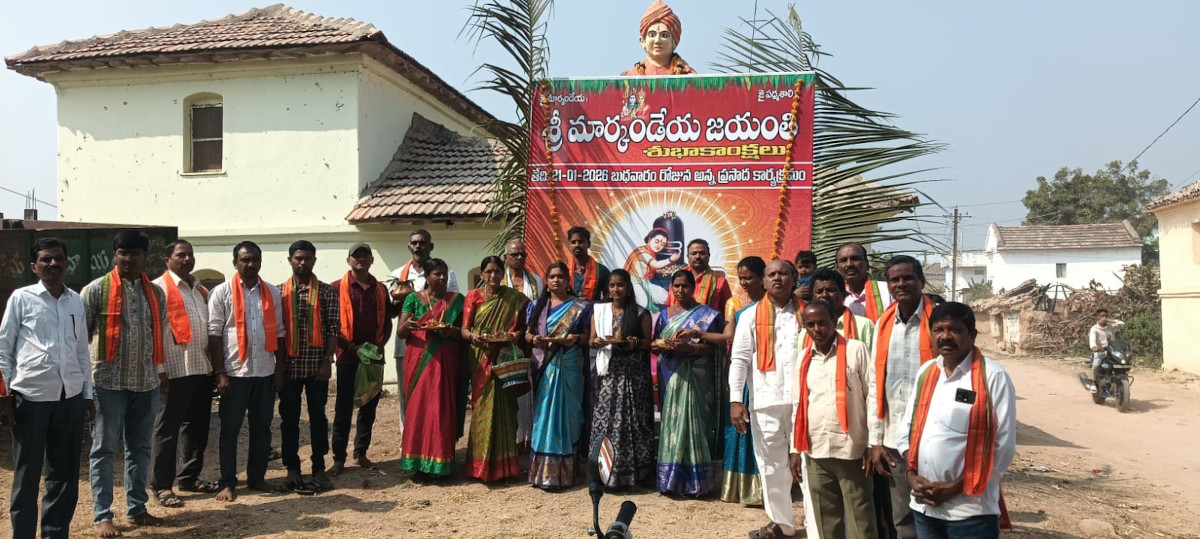 మండలంలోని బ్రాహ్మణపల్లి గ్రామంలో పద్మ శాలి సంగం ఆధ్వర్యంలో మార్కండేయ జయంతి, పూజ కుంకుమార్చన, అన్నదానం కార్యక్రమాలు నిర్వహించామని మండల పద్మశాలి సంఘం అధ్యక్షుడు శ్రీపతి శేఖర్ తెలిపారు. ఈ కార్యక్రమంలో సర్పంచ్ శివ ప్రసాద్, ఉపసర్పంచ్ భూమిక, సంఘ పెద్దలు శ్రీనివాస్, రాజేశ్వర్, రాజేందర్, గంగాధర్, శ్రీకాంత్, శ్రీమన్ ప్రసాద్, పంచాక్షరి, సంఘ సభ్యులు, మహిళలు, గ్రామ ప్రజలు సత్రంలో పాల్గొన్నారు.